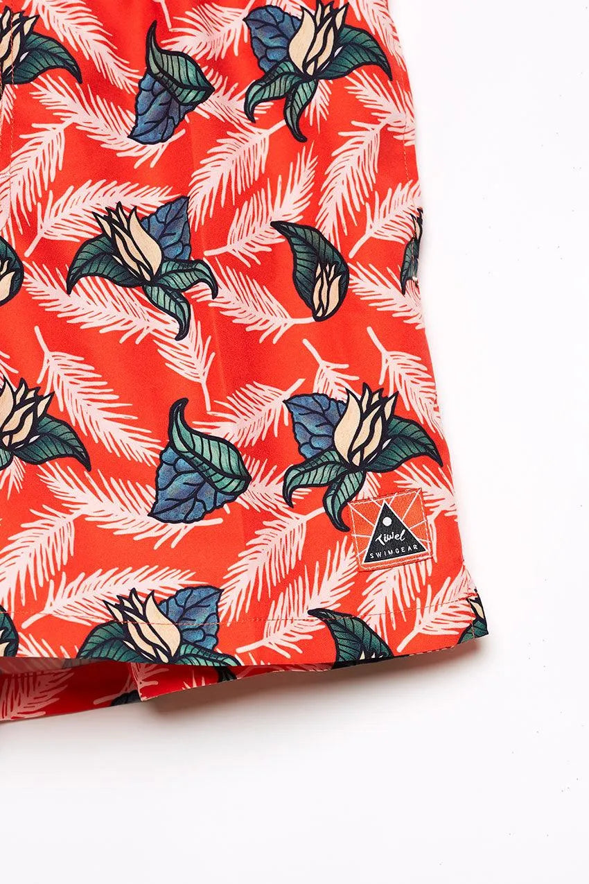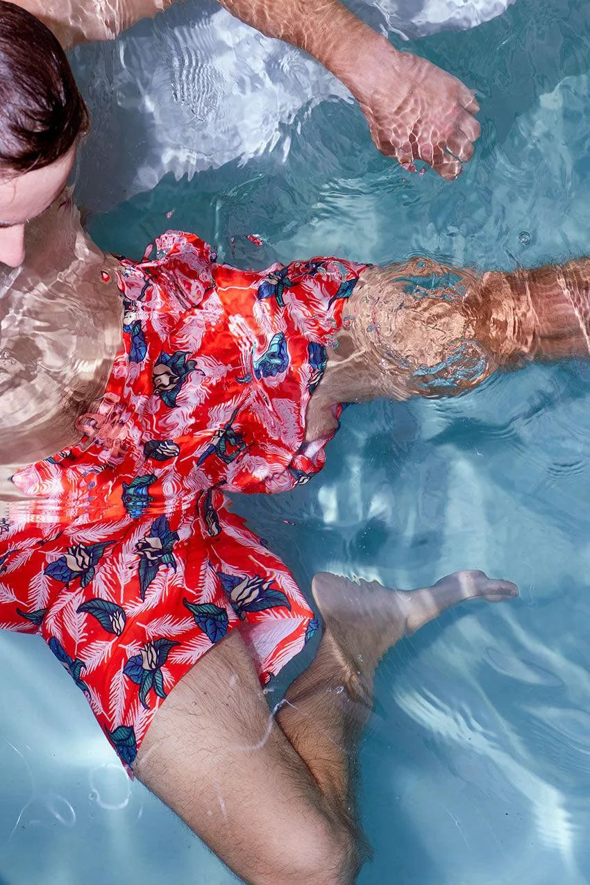 Bañador Kilauea con cintura elástica ajustable y cordón que lo hacen cómodo y funcional para bañarte este verano en la playa o la piscina. Decoración y estampado floral all-over-print diseñada, en exclusiva, para la nueva colección spring-summer, edición especial, “Lucky Blue- Flora & Fauna Kingdom”.