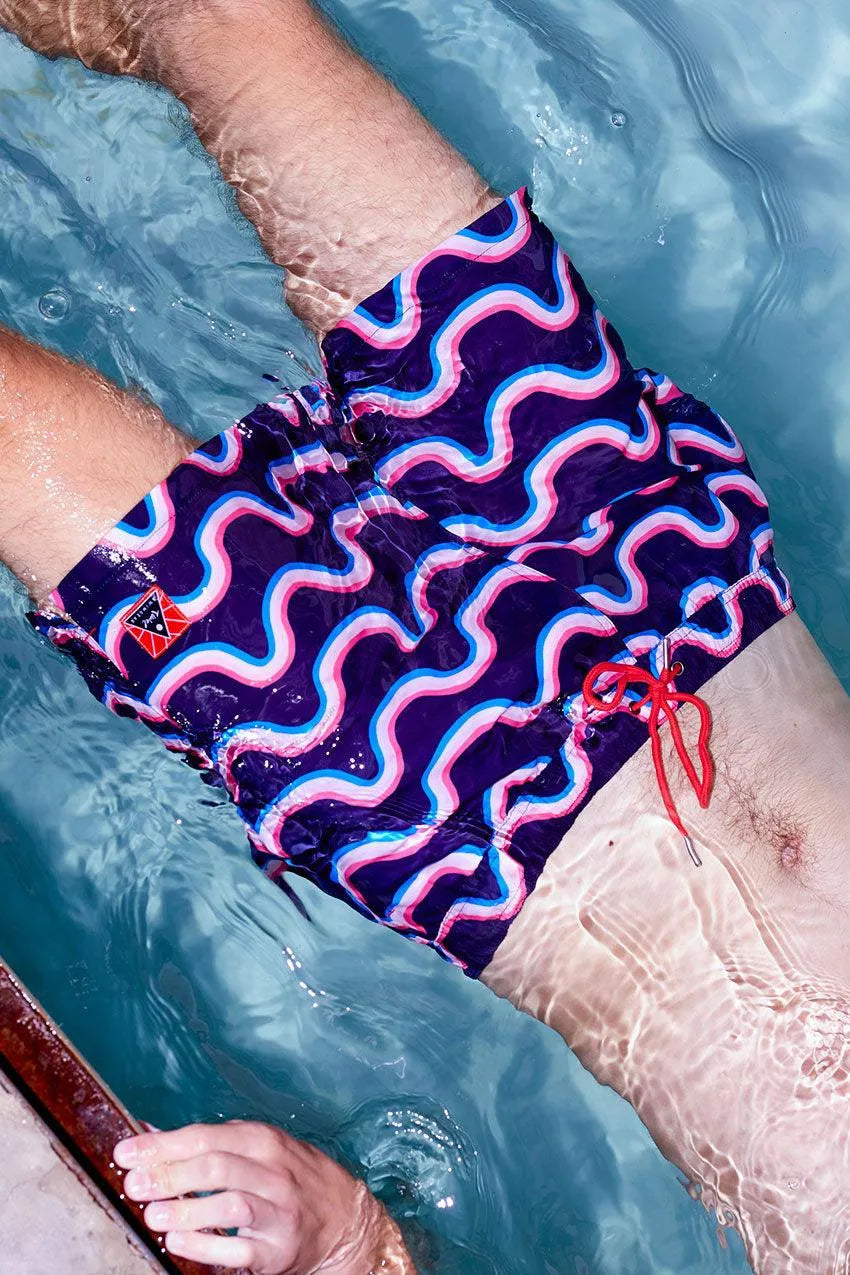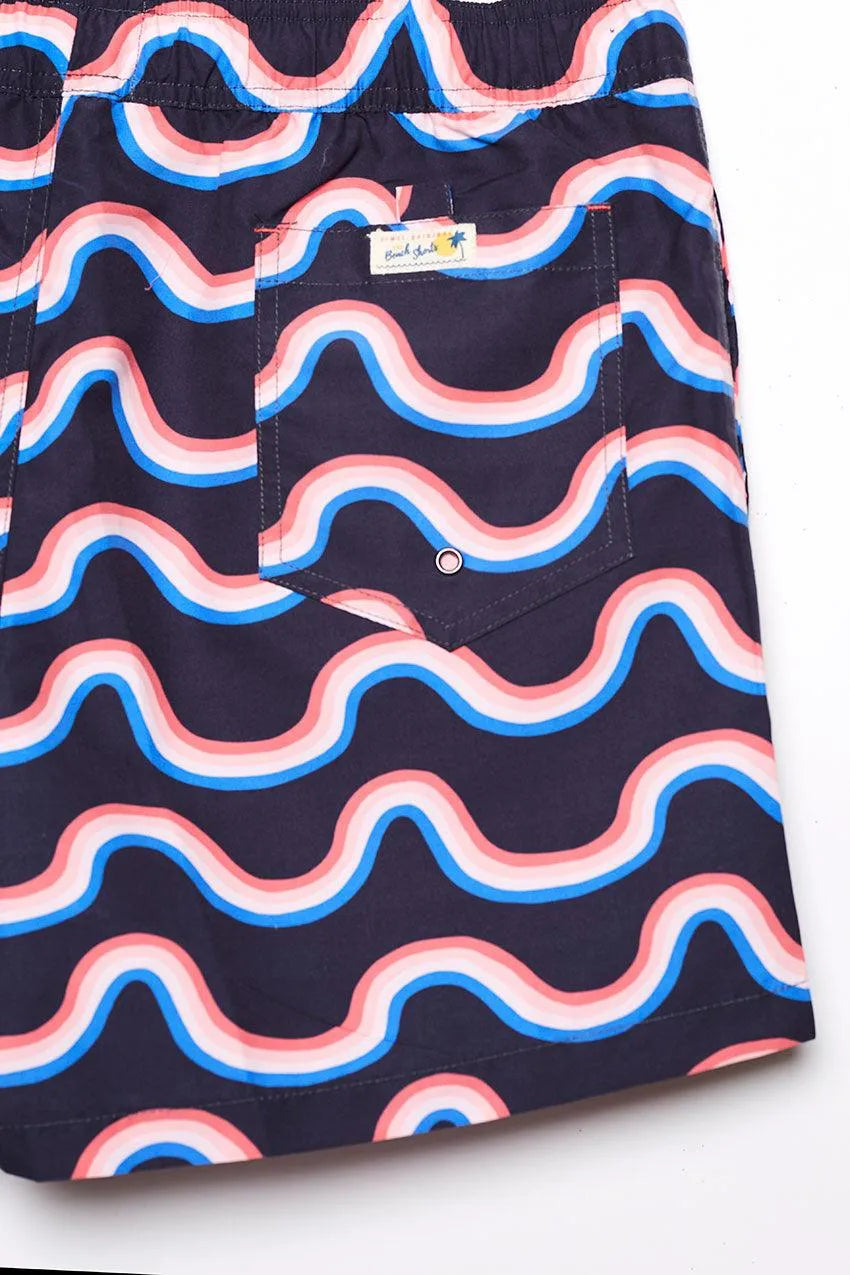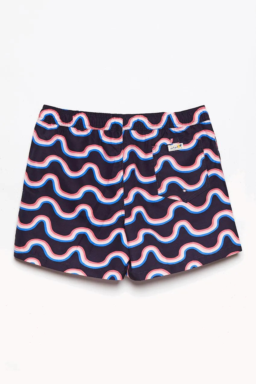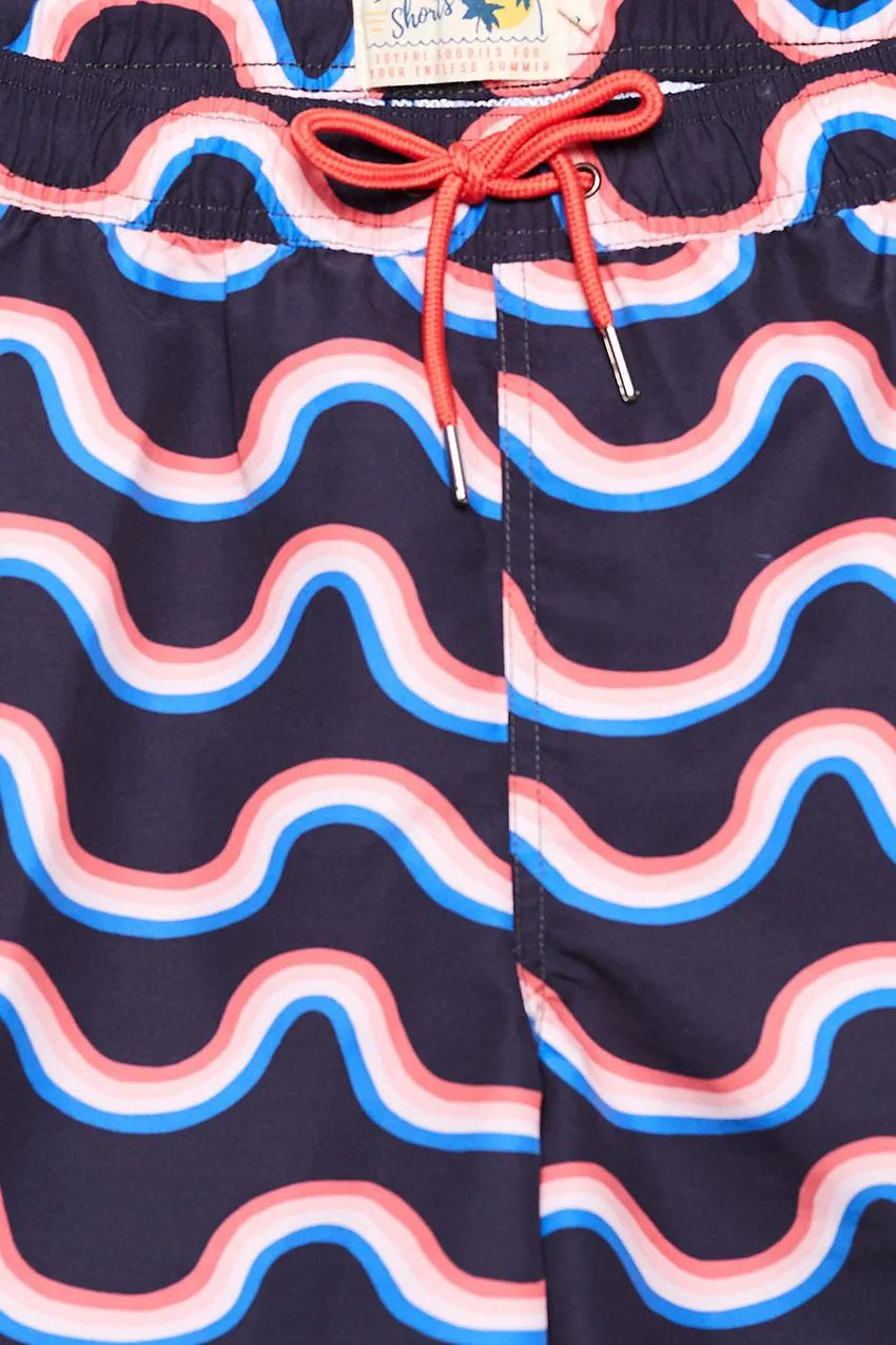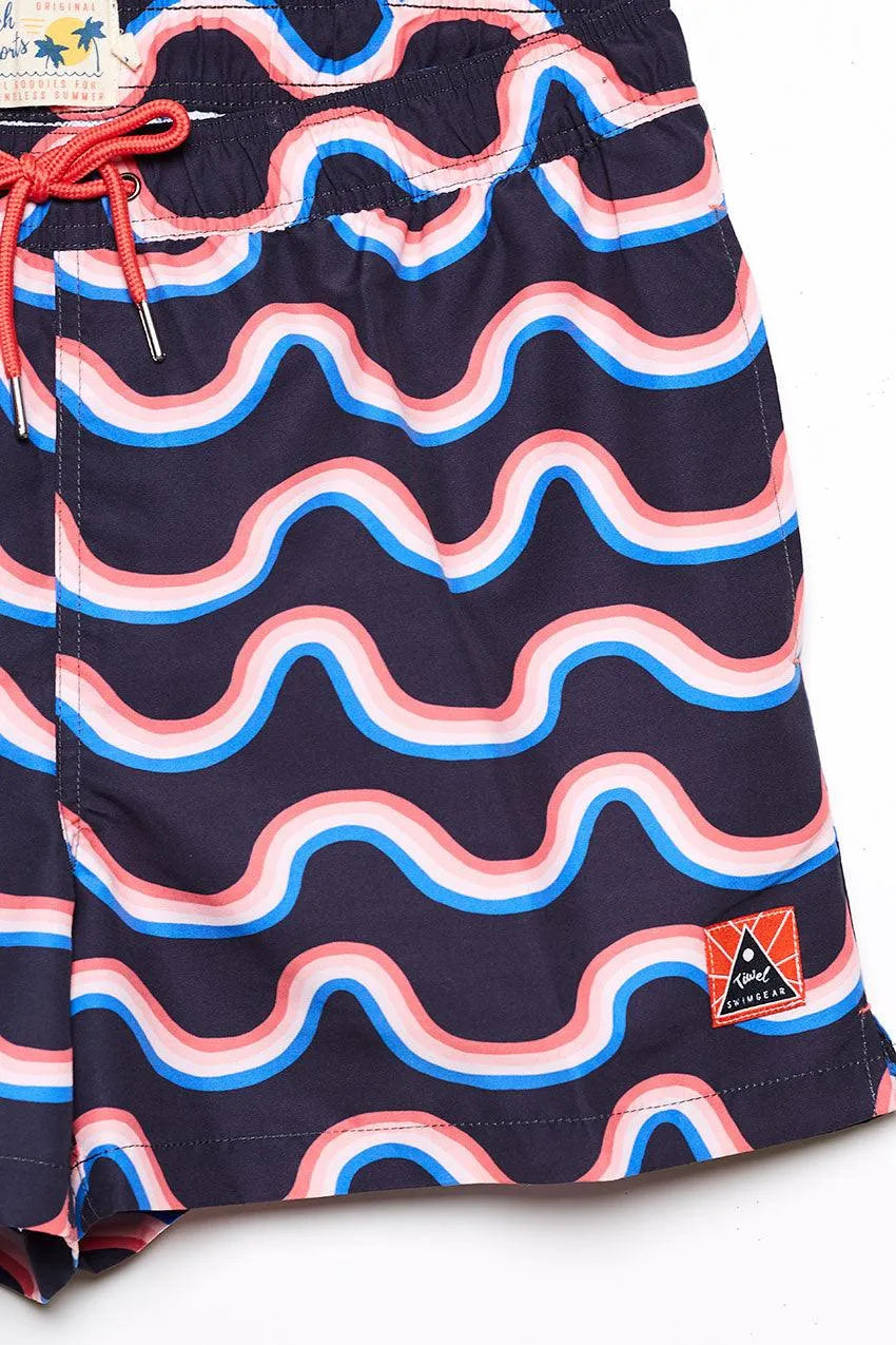 Bañador Kurves con cintura elástica ajustable y cordón que lo hacen cómodo y funcional para bañarte este verano en la playa o la piscina. Decoración y estampado con efecto olas multicolores all-over-print diseñada, en exclusiva, para la nueva cápsula temática, edición especial, “Lucky Blue”.