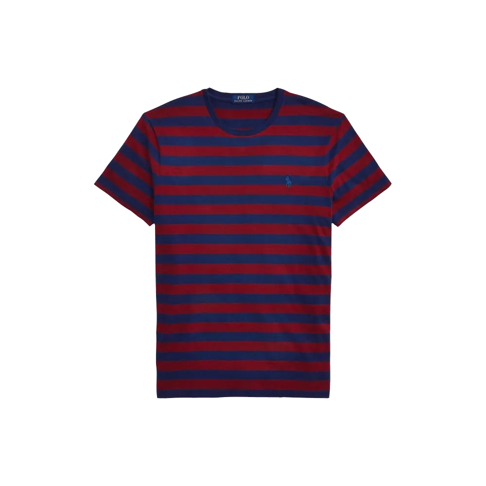Esta camiseta con cuello redondo ha sido confeccionada con suave punto jersey de algodón y presenta rayas clásicas y nuestro caballo marca de la casa bordado.