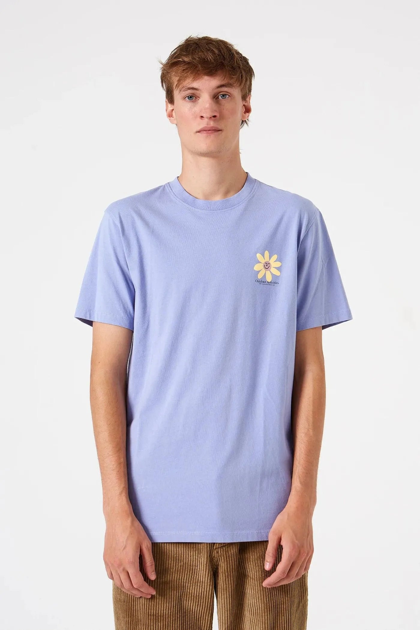 Camiseta de manga corta en color morado claro. Fabricada en algodón 100% orgánico. Cuenta con una ilustración en la parte delantera y trasera.