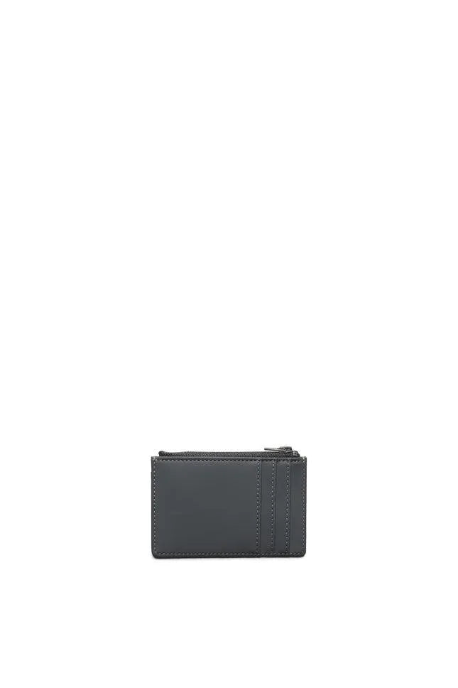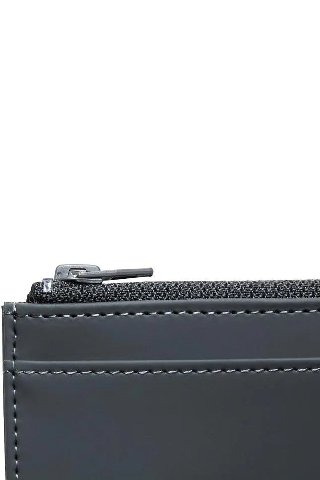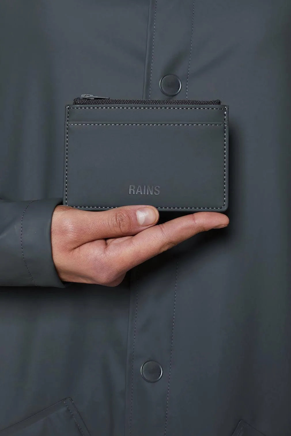 Zip Wallet es un artículo de Rains unisex que cuenta con tres ranuras exteriores para tarjetas, una ranura externa para recibos y un bolsillo central con cierre de cremallera para efectivo y monedas. Está confeccionado con el tejido impermeable característico de Rains con un logotipo de Rains en relieve.