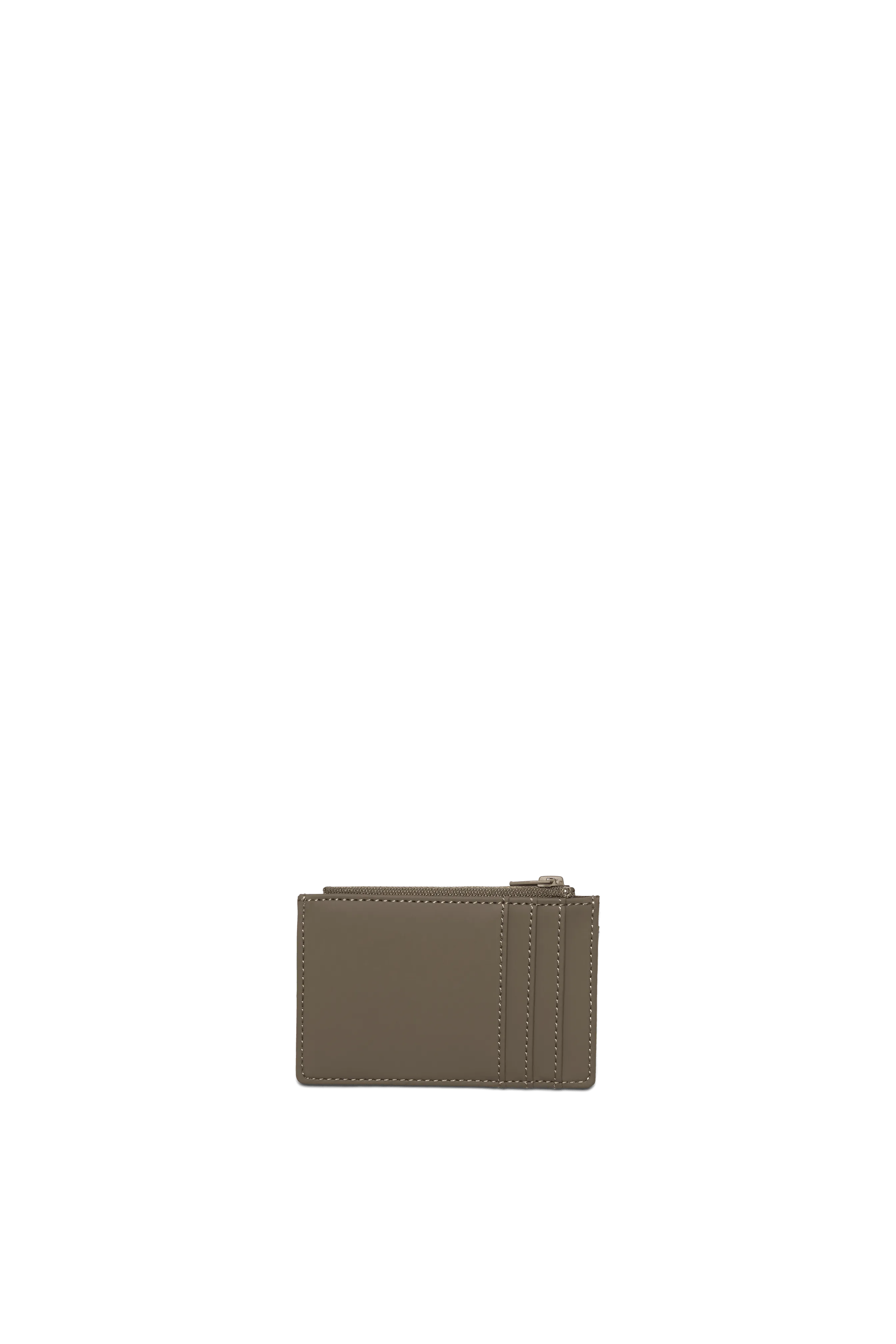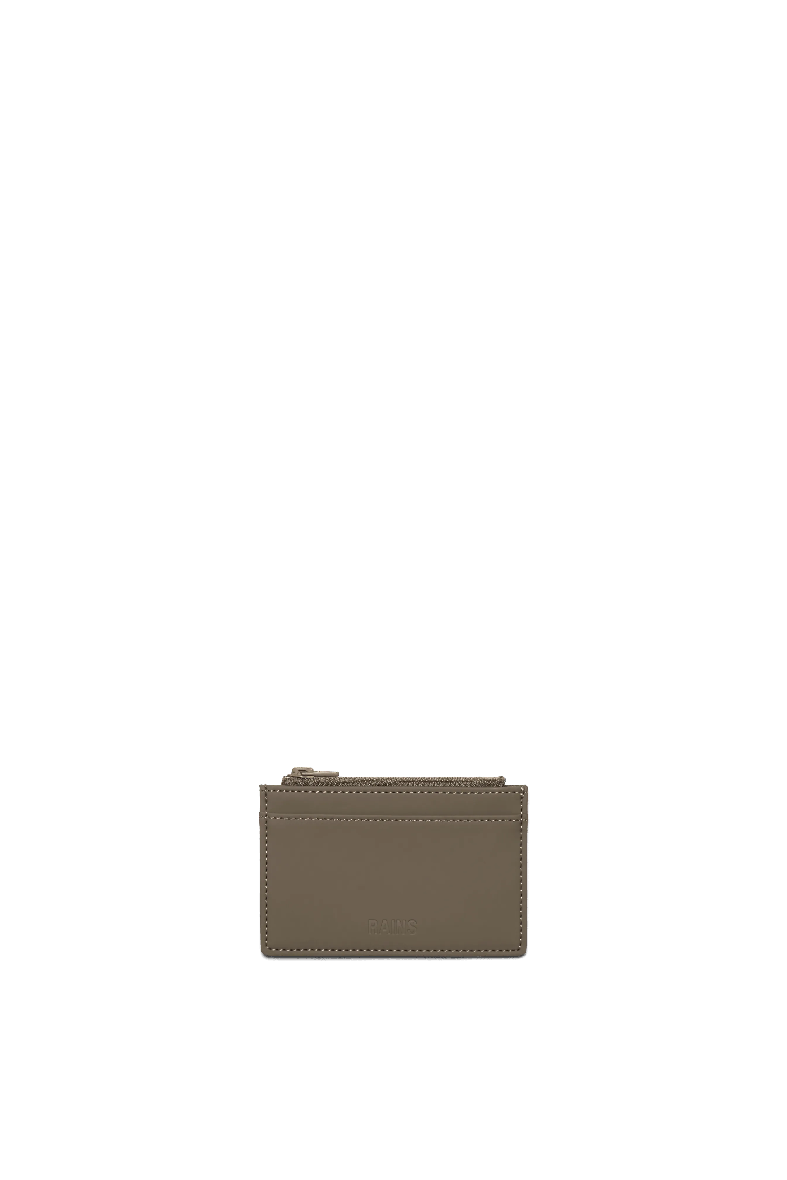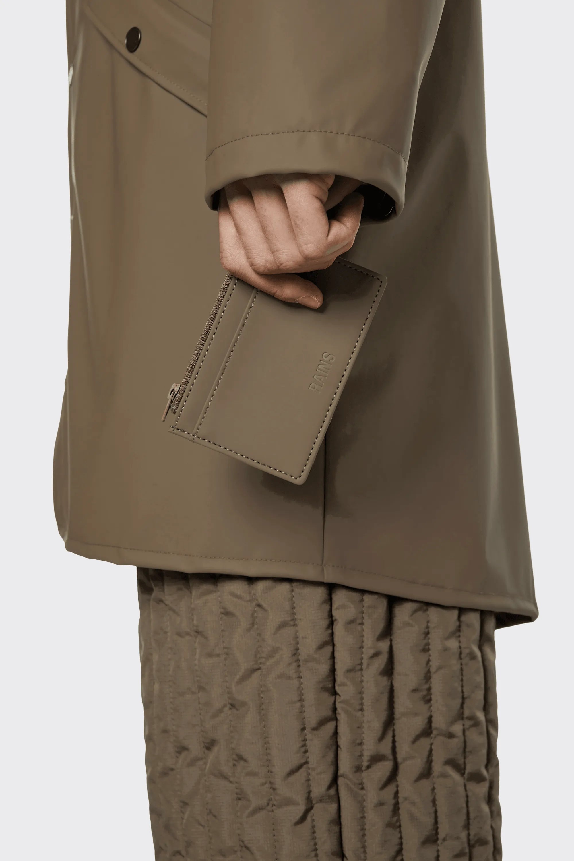 Zip Wallet es un artículo de Rains unisex que cuenta con tres ranuras exteriores para tarjetas, una ranura externa para recibos y un bolsillo central con cierre de cremallera para efectivo y monedas. Está confeccionado con el tejido impermeable característico de Rains con un logotipo de Rains en relieve.