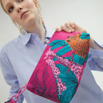 Neceser en nylon con estampado de animales multicolor. Contiene tirador logotipado y cierre con cremallera.