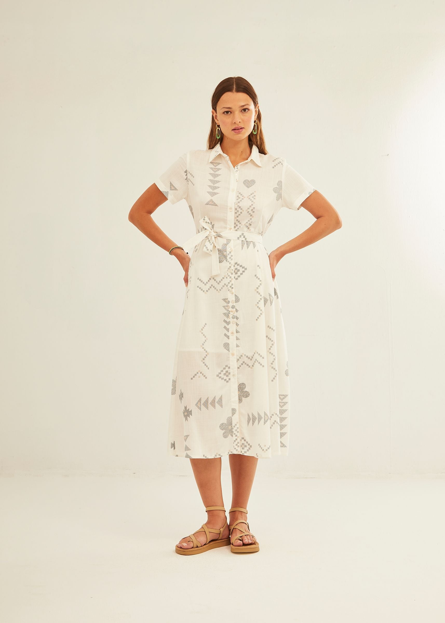 Vestido XANTIK Botones Lazo Cintura Geo Forms