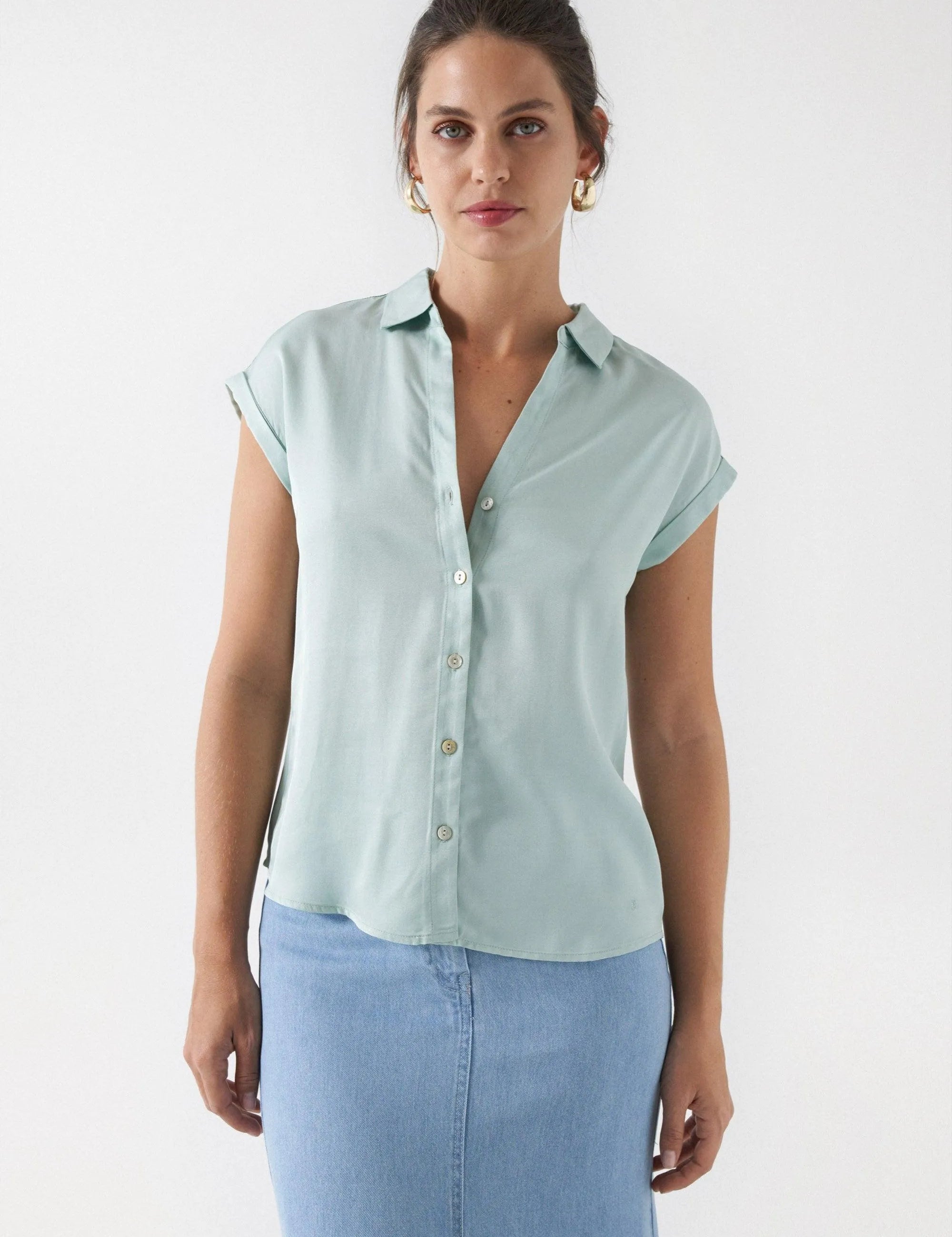 Camisa Sugarhill Candice Frill Dark Green Tiger Cutouts