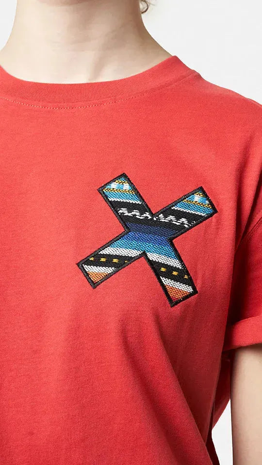 Camiseta con la clásica X bordada: delantera en el pecho y trasera en la espalda. Confeccionada con algodón 100% orgánico y corte regular fit.