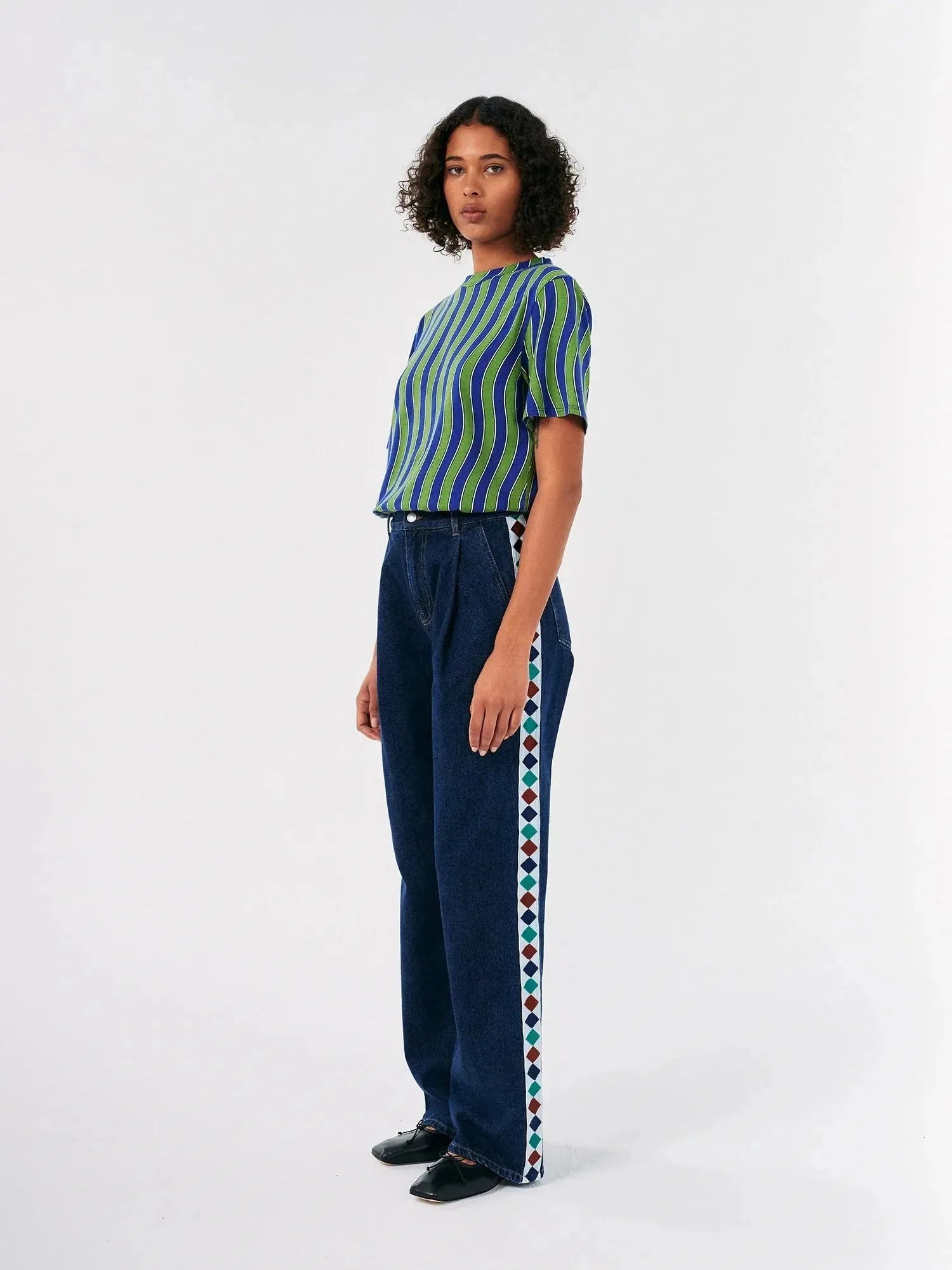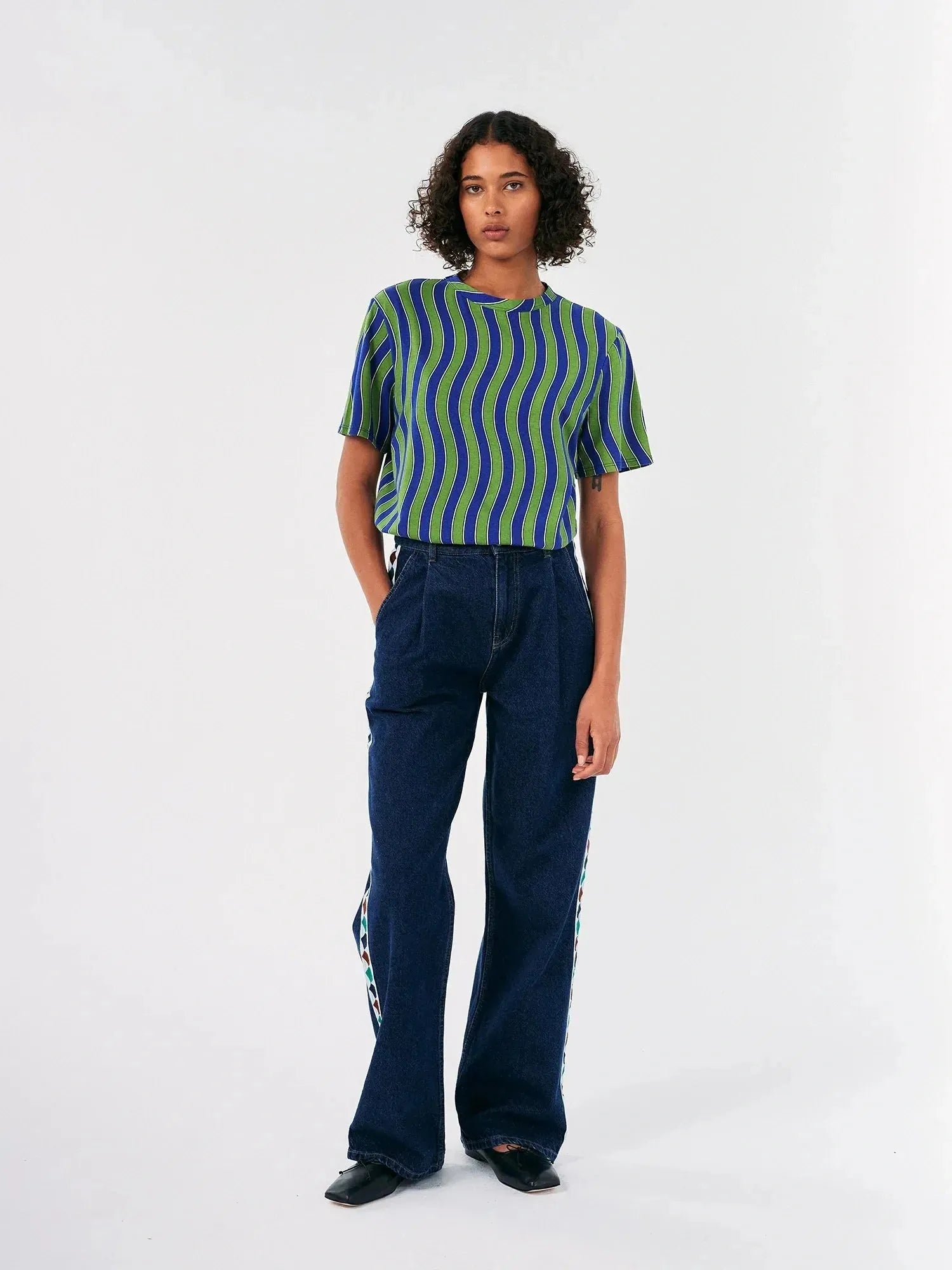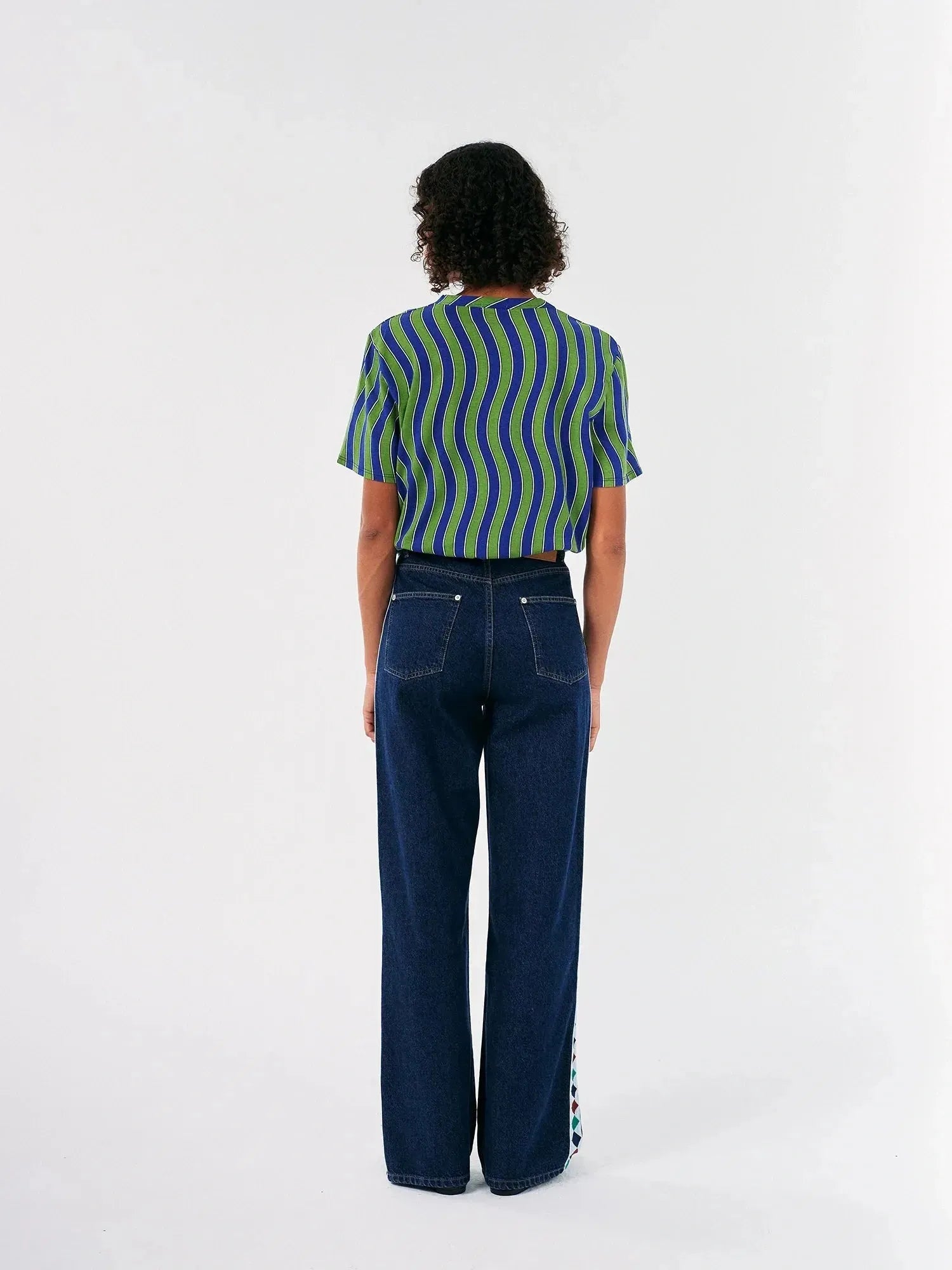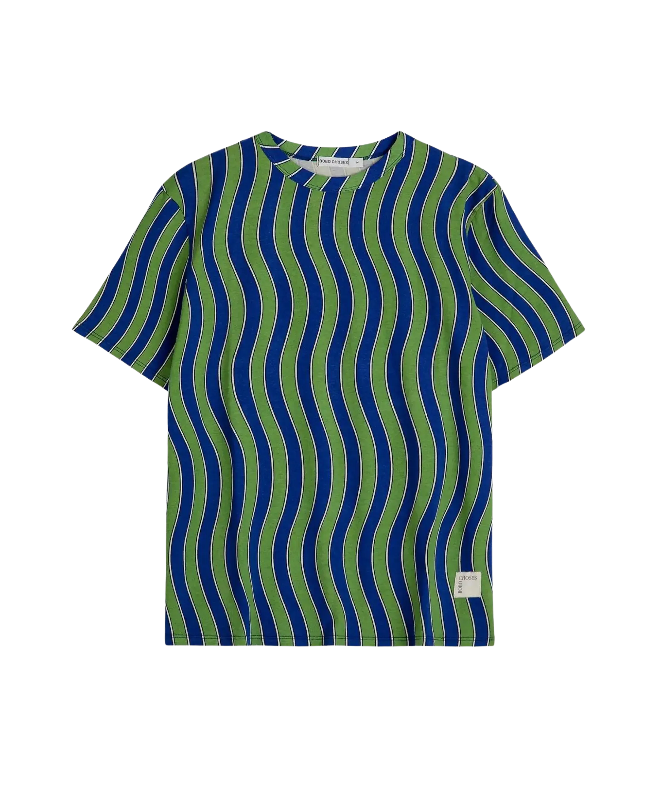 Un básico en cualquier armario. Esta camiseta estampada de ondas multicolor es un básico de la nueva colección de Bobo Choses «Once Upon a Time». Su diseño lineal, adornado con una sofisticada y atemporal paleta de colores azules y verdes, combina sin esfuerzo con tus otras prendas favoritas. Complementa cualquier estilo.