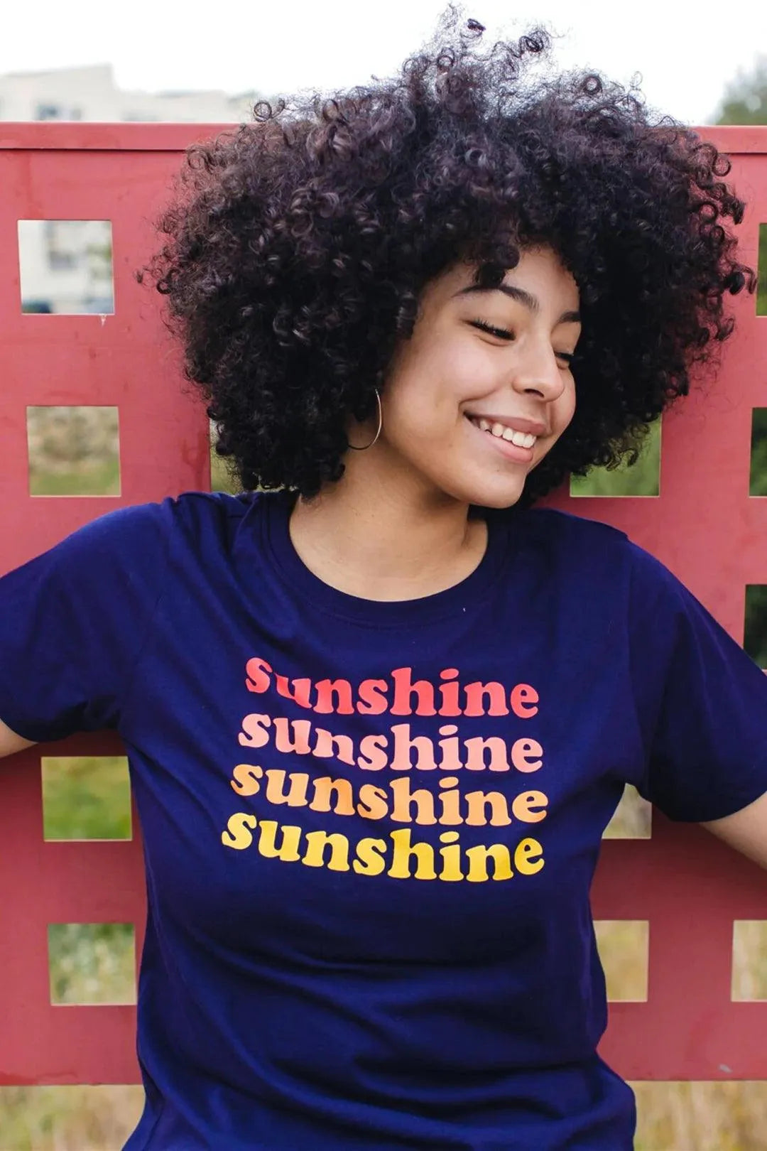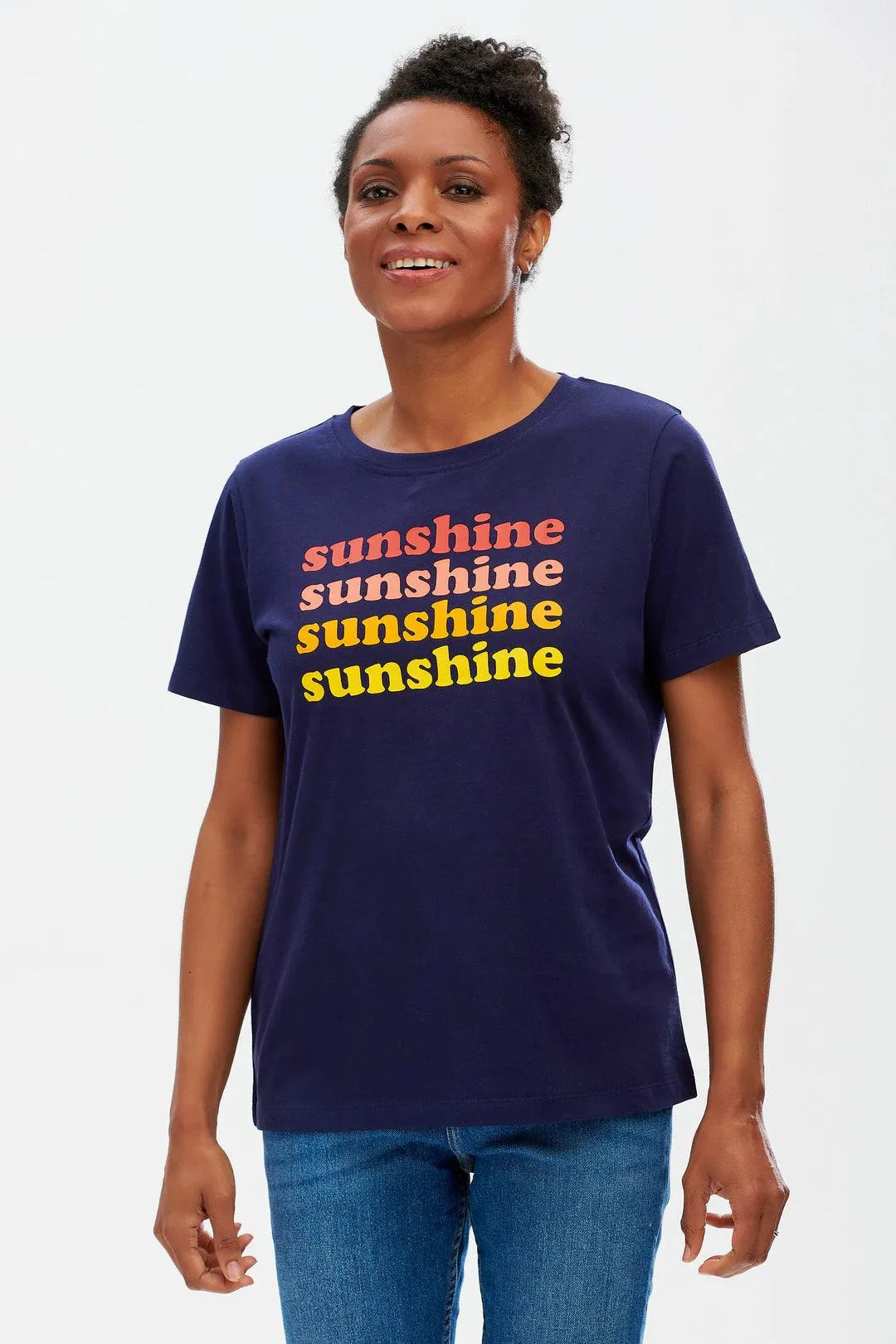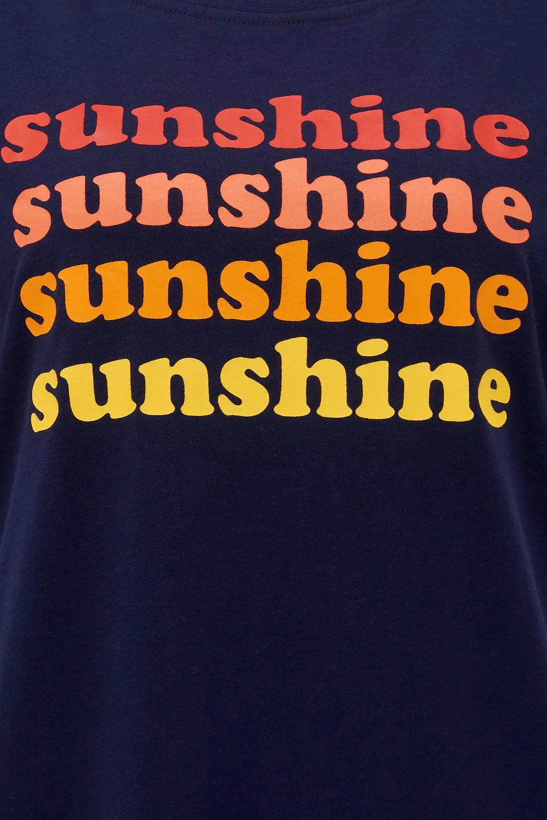 Hemos actualizado la forma de nuestra camiseta exclusiva, la Maggie tiene costuras laterales rectas y espalda recta para un ajuste clásico. El diseño de sol vibrante tiene un eslogan retro en el frente sobre una base amarilla tenue. Hecha de 100% algodón orgánico, esta camiseta es muy especial.