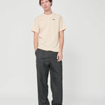 Confeccionada en algodón 100 % de punto jersey, ofrece un tacto suave y una estructura consistente, pensada para mantener su forma con el uso. El acabado garment dye aporta un efecto lavado que hace que cada pieza tenga un carácter ligeramente único, reforzando su aspecto relajado y auténtico.