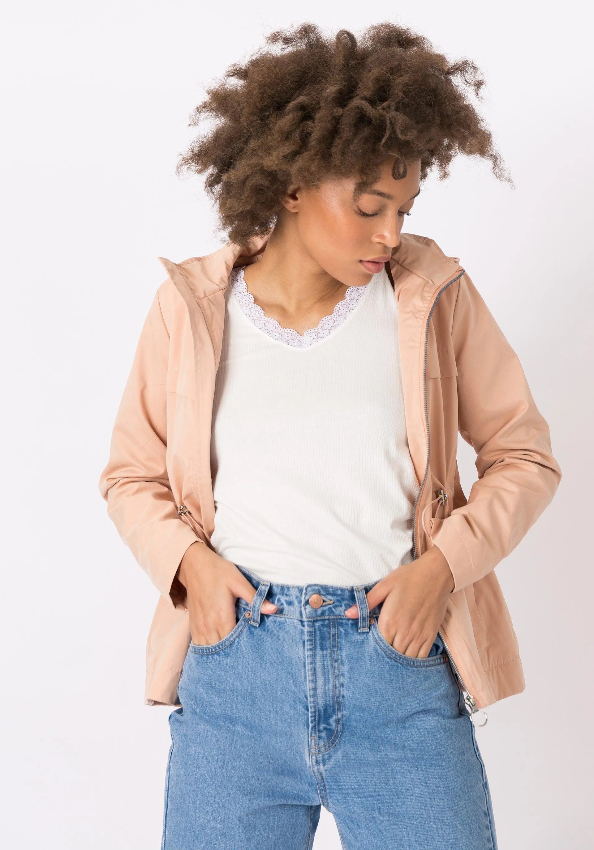 Chaqueta de verano con capucha y cierre de creamallera.