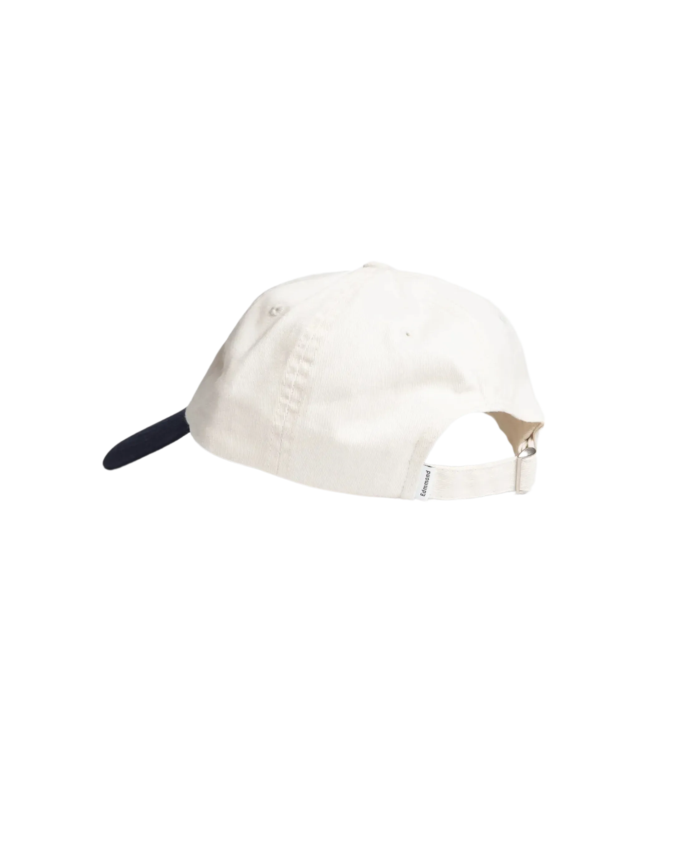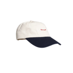 Gorra blanco roto bicolor hecha con 100% algodón. Con nuestro logo bordado en la parte delantera y cierre ajustable en la parte trasera.