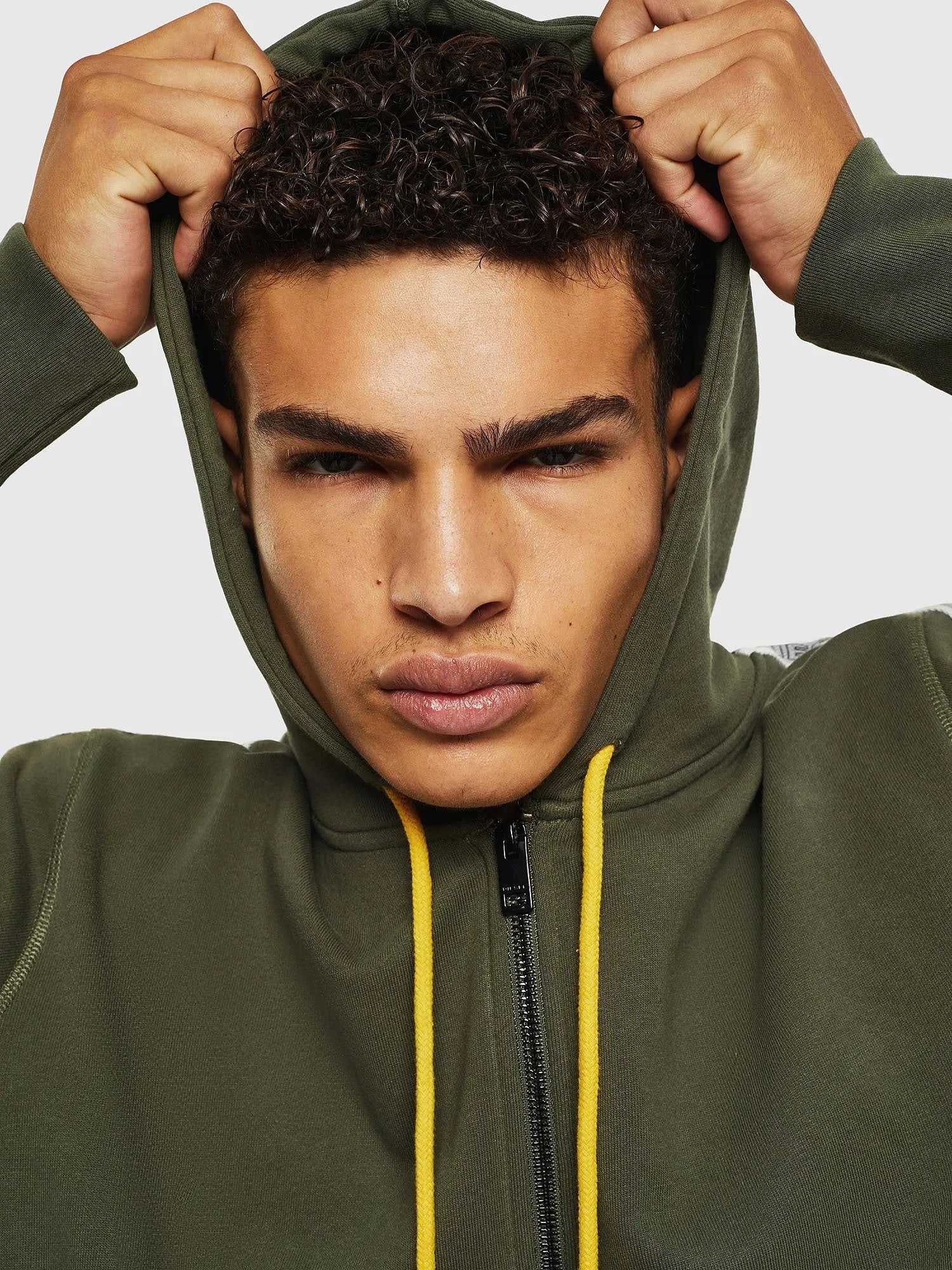 Sudadera en mezcla de algodón con capucha y cremallera. Se detalla con cintas de logotipo en las mangas y un cordón a contraste en la capucha.