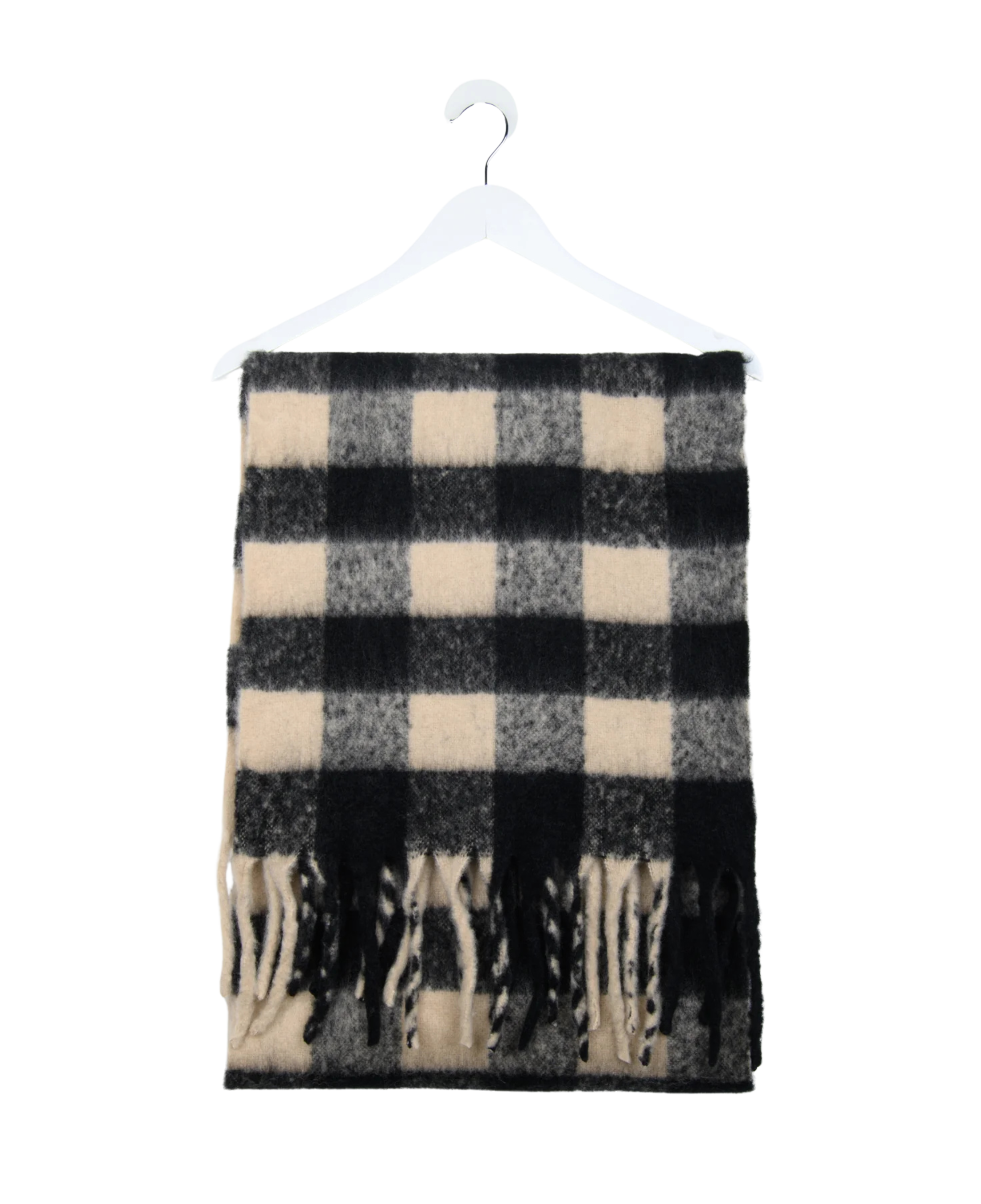 Este foulard de cuadros en negro y beige es un accesorio atemporal que combina estilo y funcionalidad. Con un acabado suave y esponjoso, ofrece la calidez ideal para los días más fríos sin renunciar a un diseño versátil que se adapta a cualquier look.