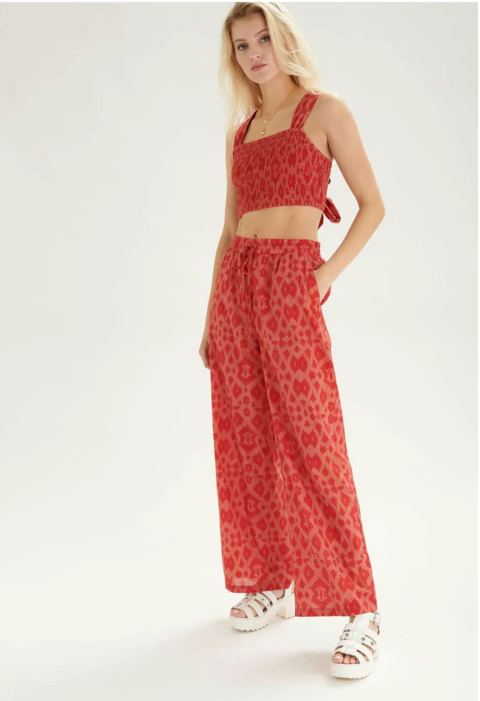 Pantalón largo en estampado de color rojo de la marca 24colours.