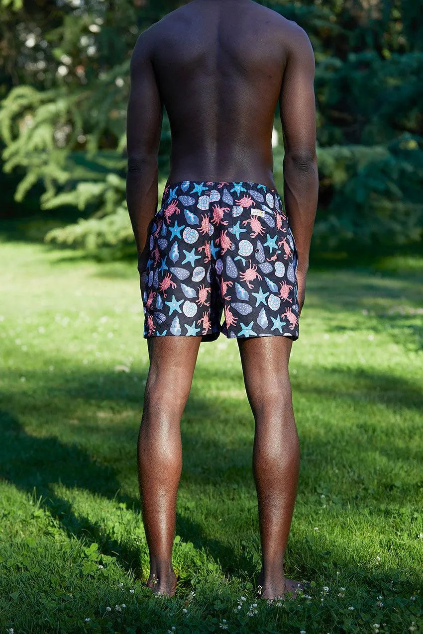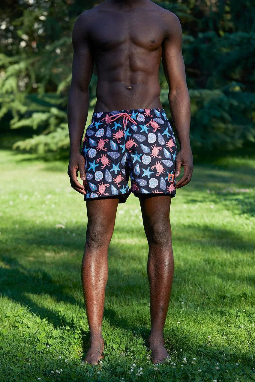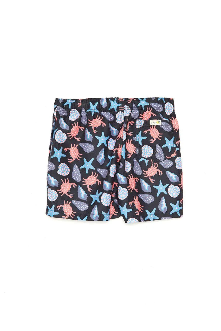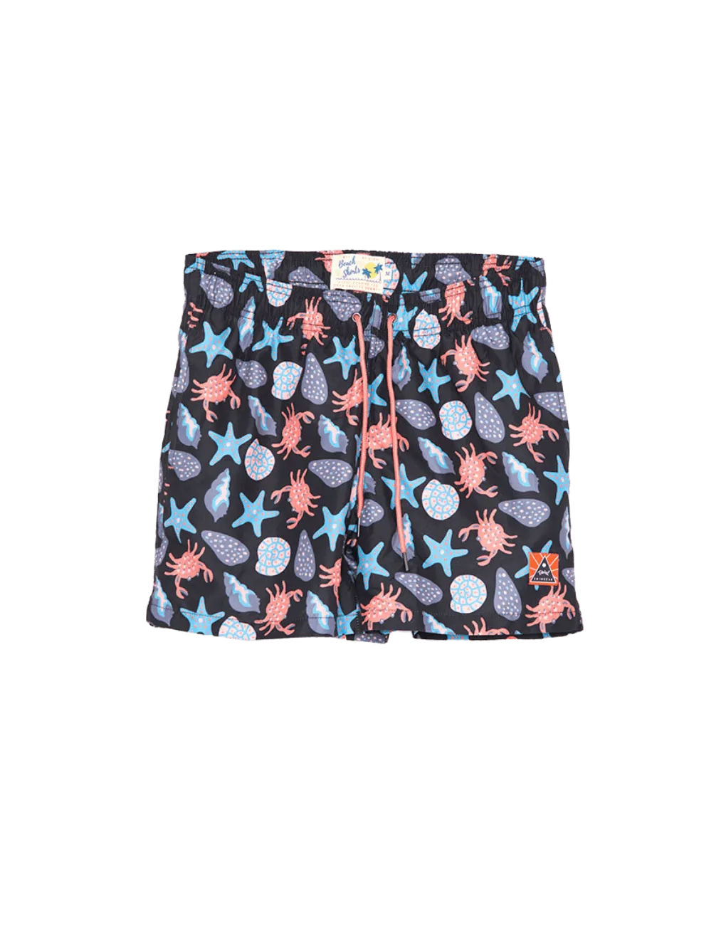 Bañador Crab Crab, con cordón de cierre redondo que lo hacen cómodo y funcional para bañarte este verano en la playa o la piscina. Decoración y estampado all-over-print (AOP) marino con cangrejos, estrellas de mar, corales y conchas. Composición 100% microfibra peach de poliéster reciclada a partir de botellas de plástico con certificación REPREVE.