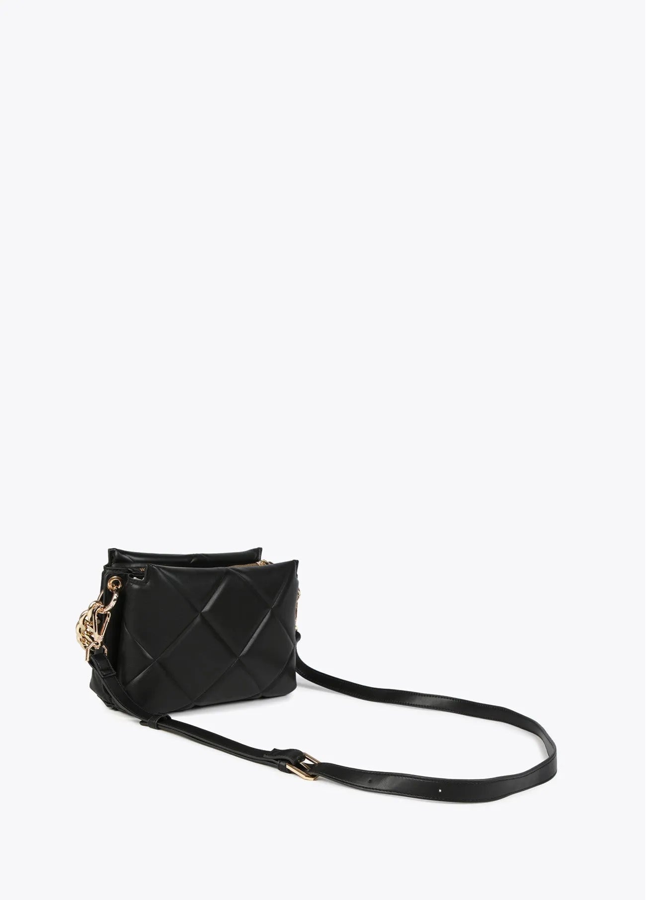 Bolso bandolera acolchado en efecto piel. Detalle de acolchado diamante y cadena combinada. Cierre imantado y con cremallera.