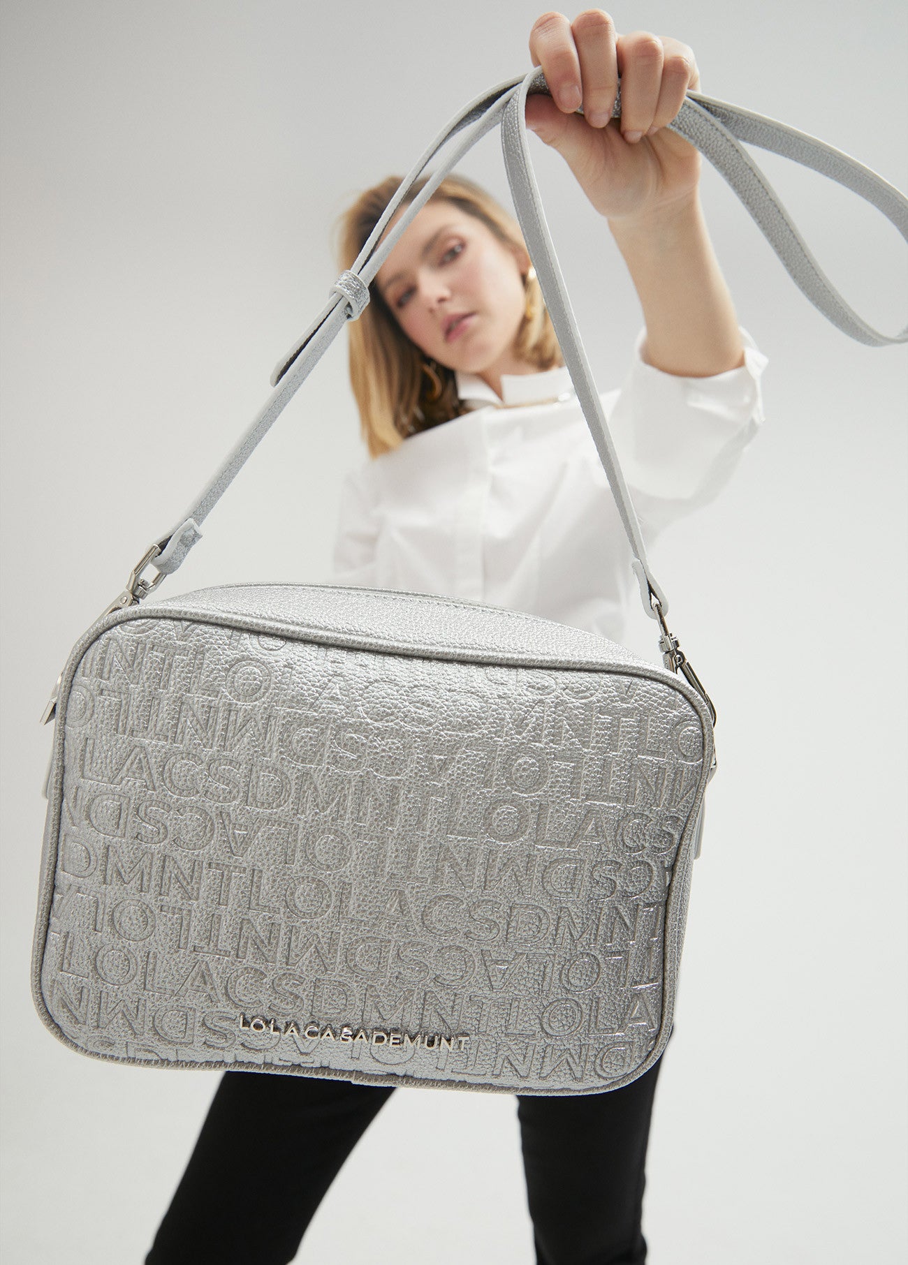 Bolso LOLA CASADEMUNT Bandolera Monograma Efecto Piel Plateado