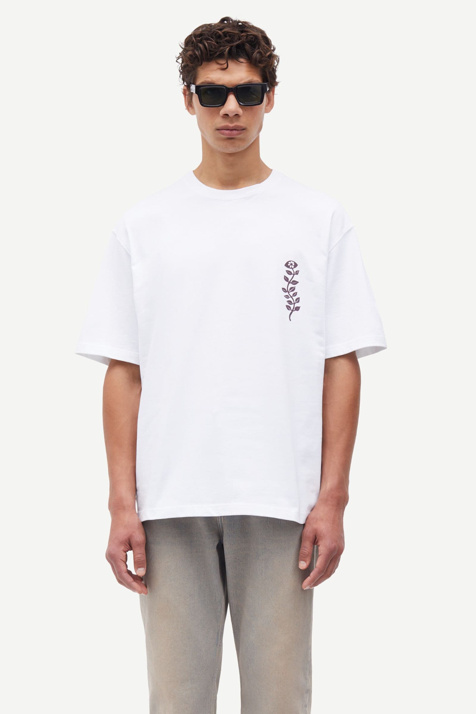 Camiseta unisex de punto con corte holgado y hombros caídos. Cuello de punto elástico. Cuello redondo. Estampado delante y detrás. Creada en colaboración con Kris Chau. Material principal 100% algodón orgánico. Este producto cuenta con la certificación GOTS. Cada etapa de la cadena de suministro ha cumplido estrictos requisitos sociales, medioambientales y químicos.