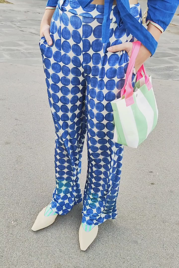 Pantalón tipo palazzo de corte recto, ancho y fluido.
