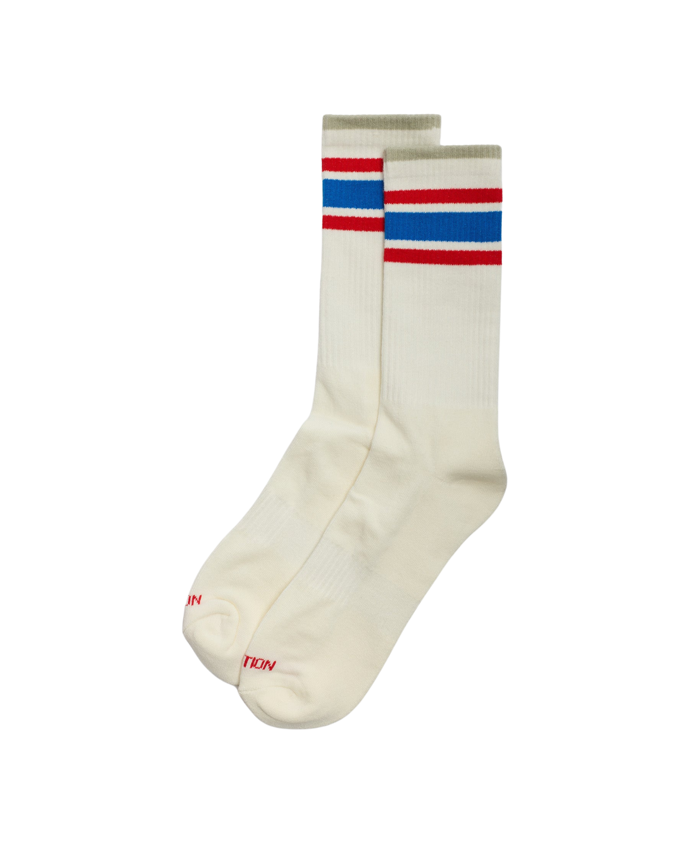 Calcetines de tenis de corte medio con suela forrada de felpa para una excelente sensación de amortiguación y con un puño tradicional con textura acanalada que ayuda a que los calcetines se mantengan en su sitio. Confeccionados con algodón orgánico supersuave y fibras mixtas de poliéster, estos calcetines son perfectos para practicar deporte o para un atuendo informal. El diseño de rayas múltiples en tonos morados y rojos añade un toque retro a los calcetines, ideales para combinar con zapatillas deportivas y pantalones cortos.