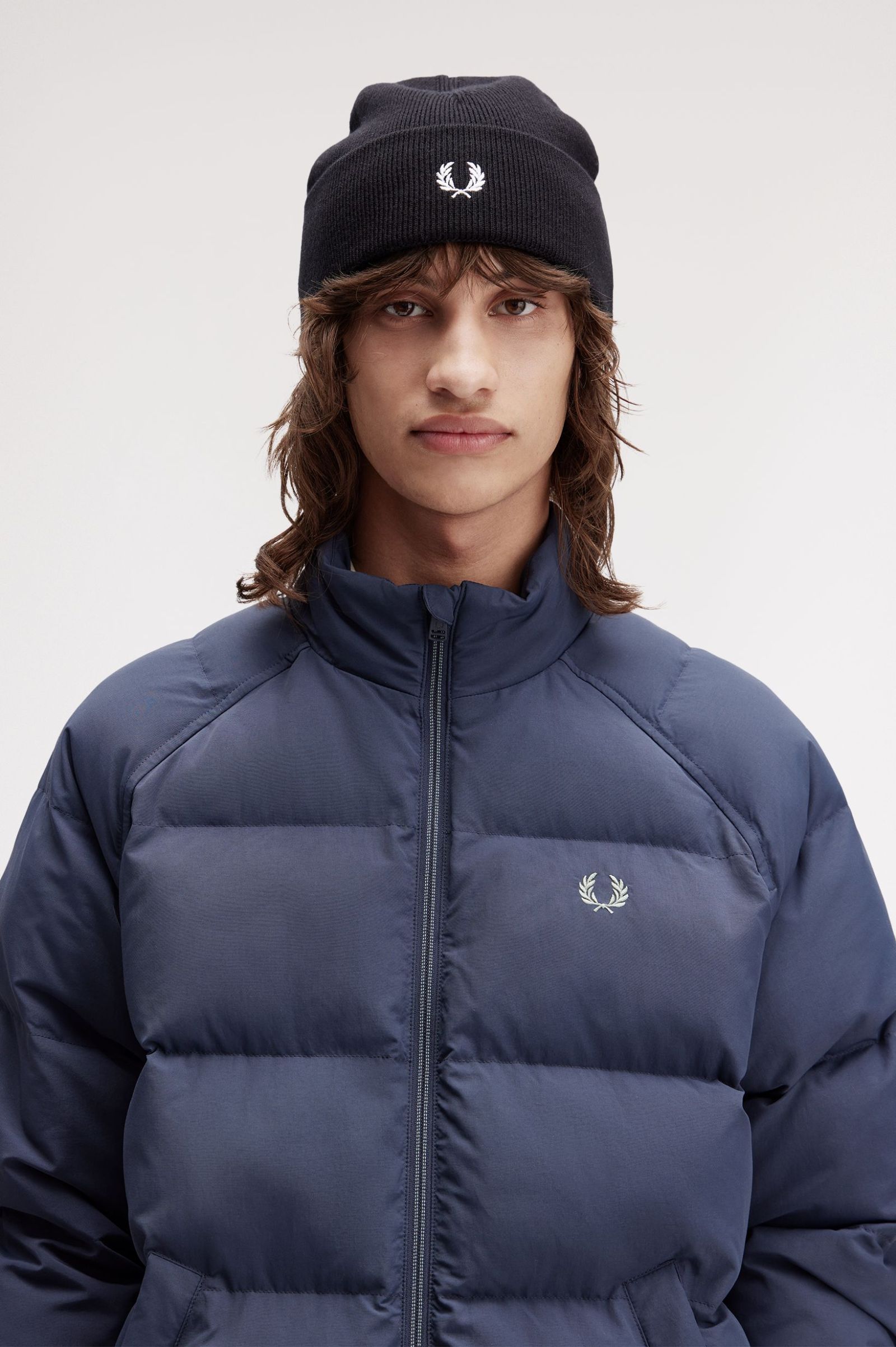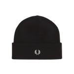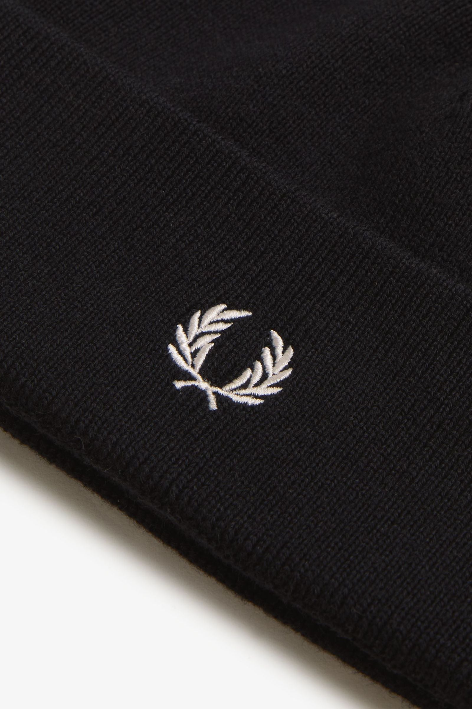 Gorro de punto de canalé en mezcla de algodón y lana merina con certificación RWS, rematado con la corona de laurel bordada en la parte central delantera.