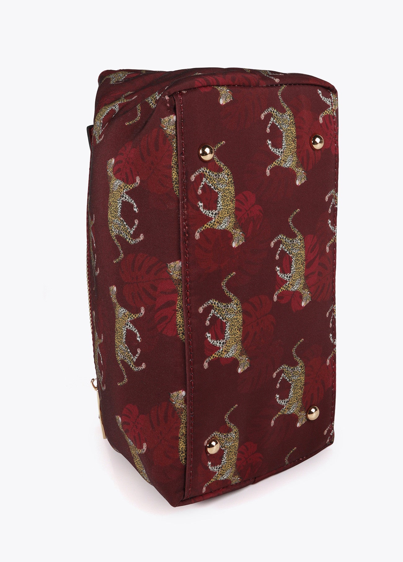 Neceser versátil con estampado de animales en tonos tierra. Hecho de material resistente y duradero. Cierre de cremallera dorada y etiqueta metálica con logo. Ideal para organizar tus esenciales de belleza.