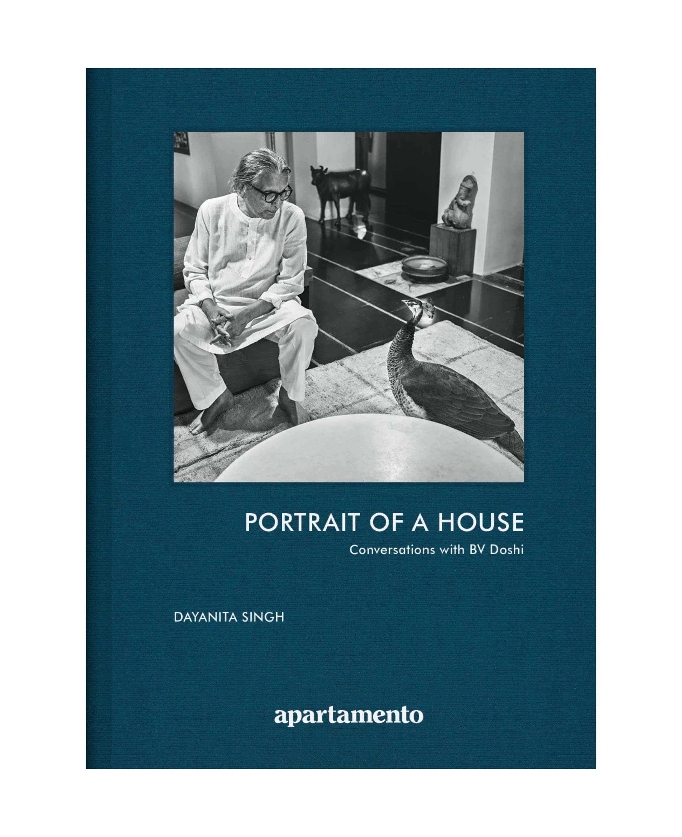 Retrato de una casa: Conversaciones con BV Doshi reúne al célebre arquitecto y a la artista fotográfica Dayanita Singh en una exploración de la alquimia afín de sus prácticas creativas. Comenzando cuando ella lo fotografió por primera vez en su famosa Kamala House (el «templo de la luz favorito» de Dayanita), llamada así en honor a la esposa de BV, el libro abarca años de conversaciones entre ambos, presentadas junto con retratos en blanco y negro del espacio lleno de familia. En un intercambio colaborativo, BV responde directamente a estas fotografías, revelando las motivaciones ocultas detrás de sus innovaciones arquitectónicas. En esencia, Retrato de una casa es una exploración de la luz, el movimiento y la capacidad de un hogar para guiar a sus habitantes, a veces arrullándolos hasta dormir o provocándoles animadas conversaciones.