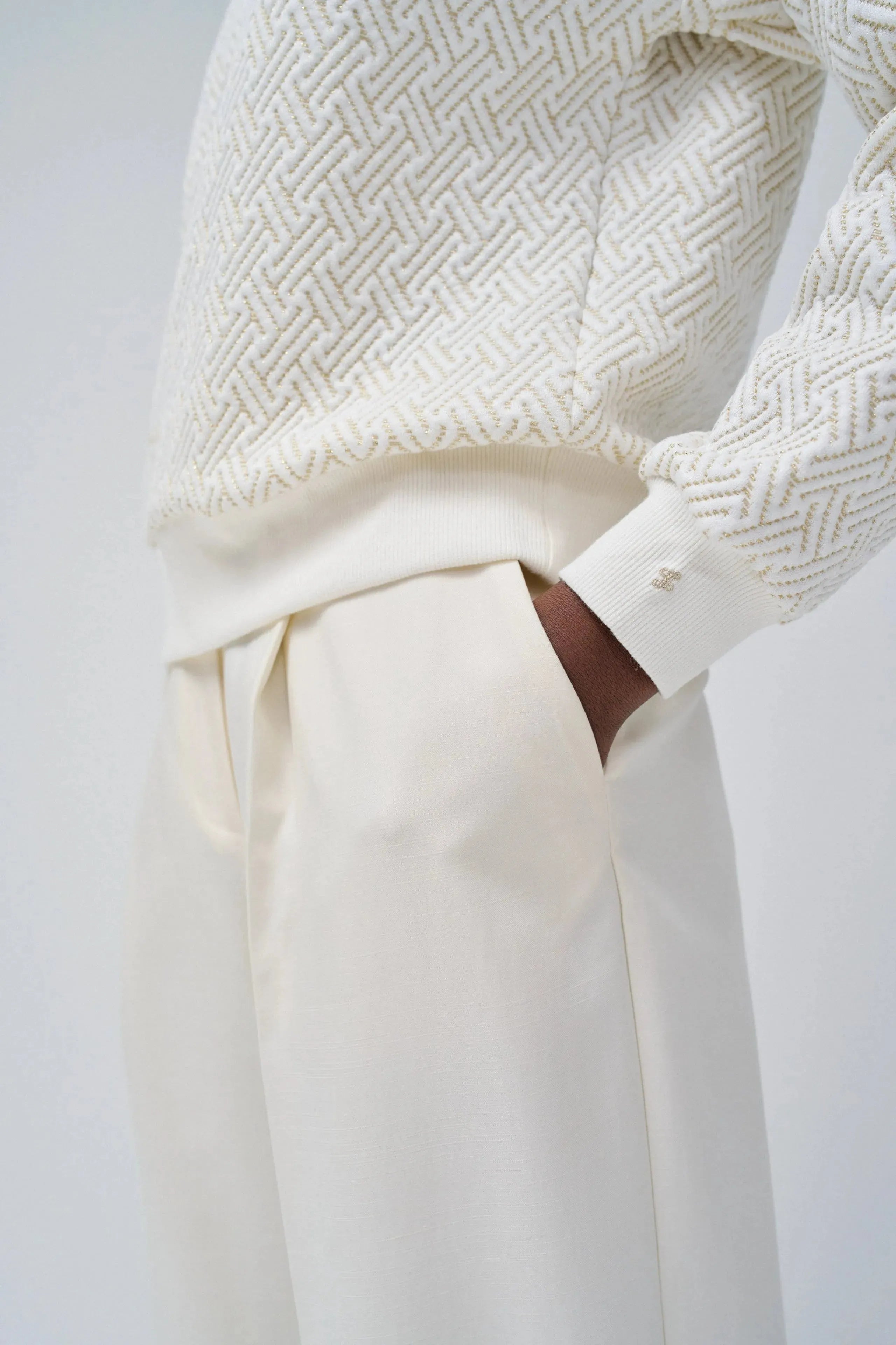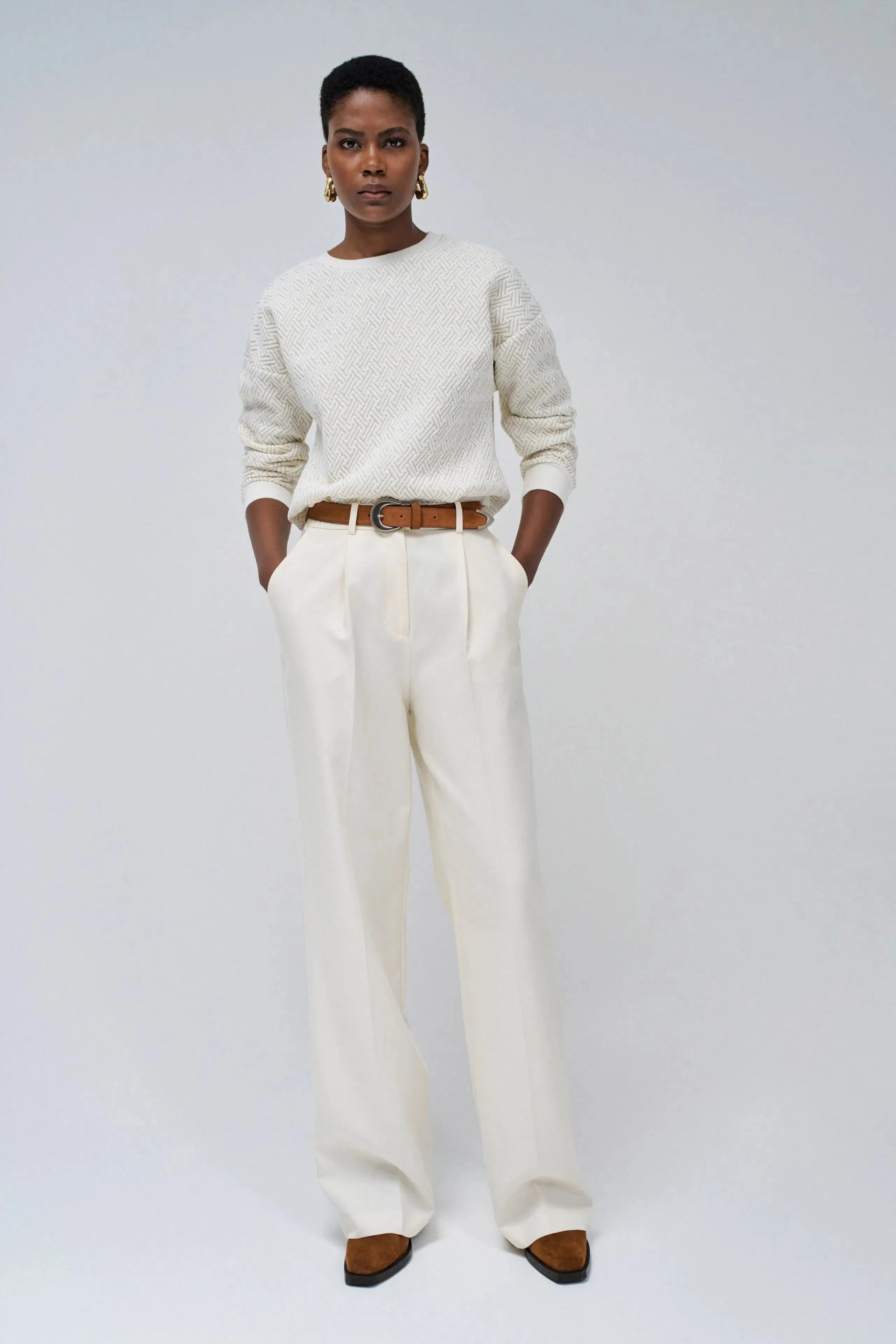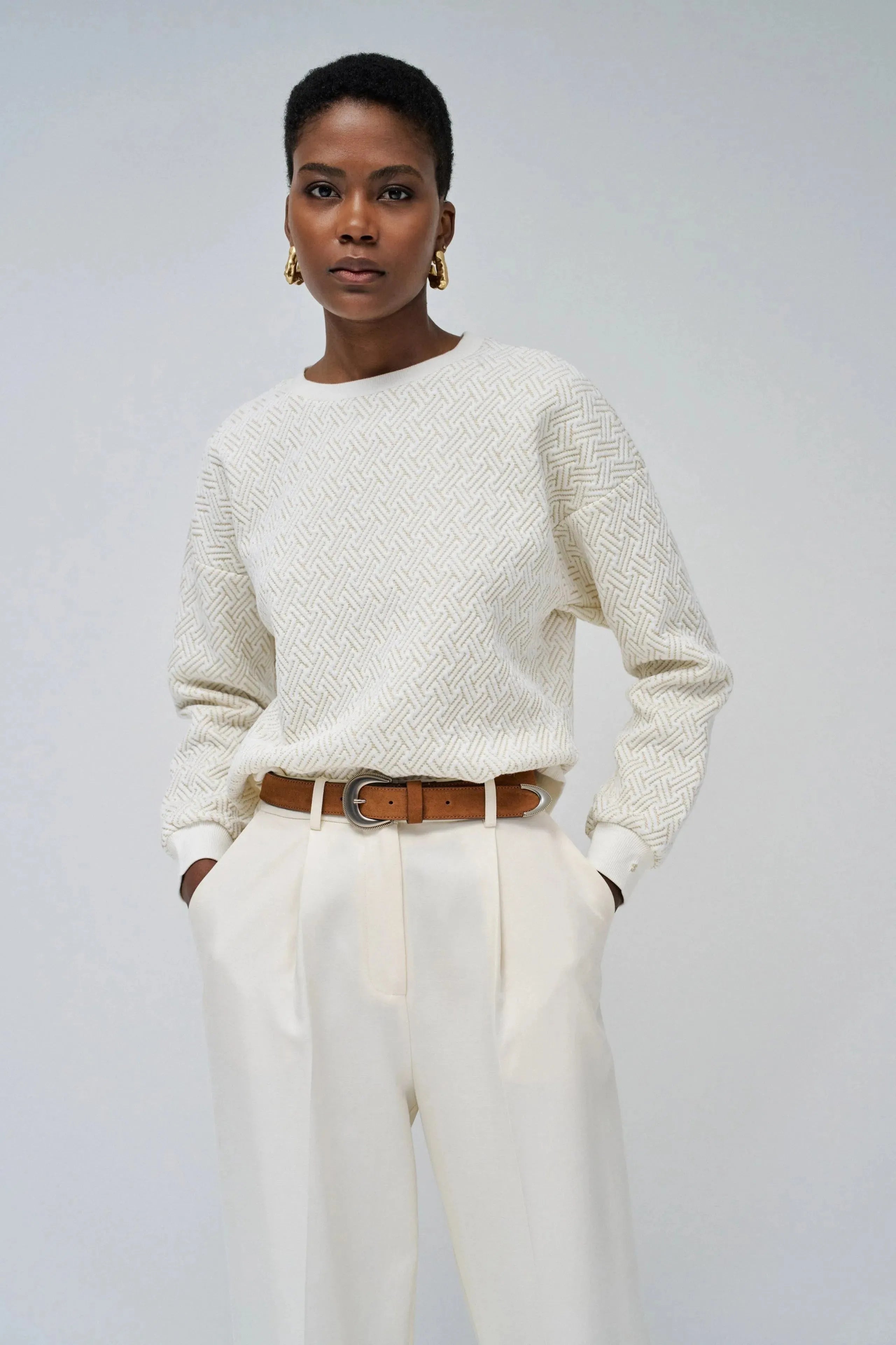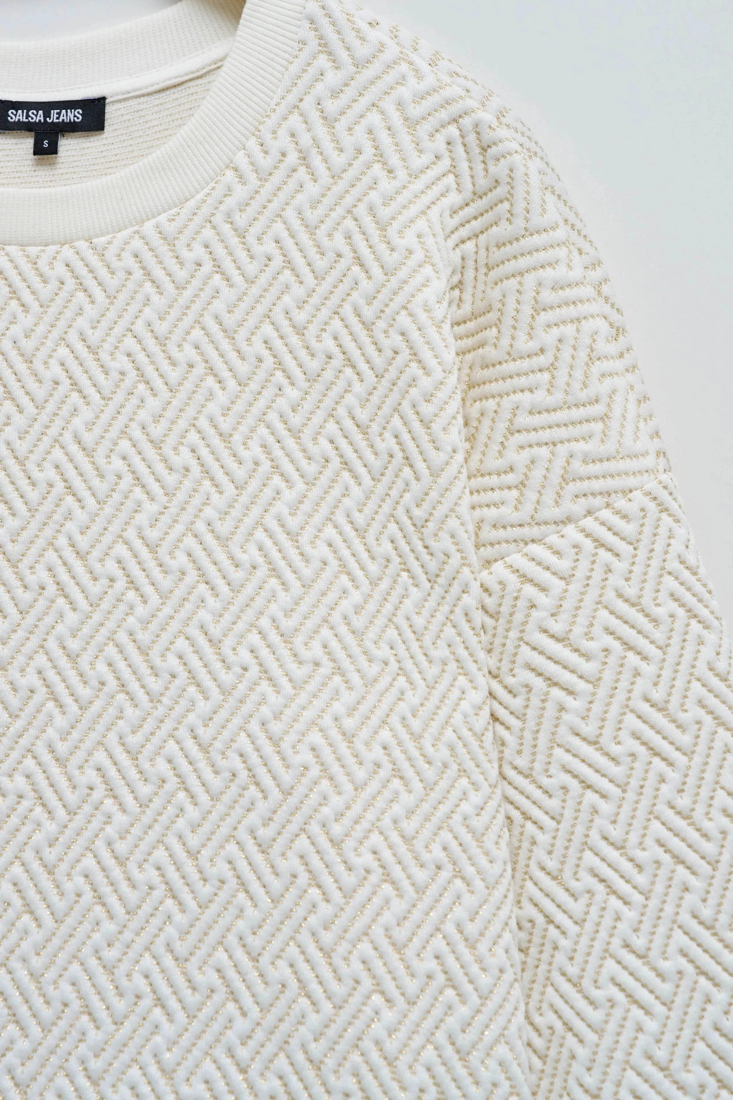 Este jersey de felpa en color crudo te proporcionará una sensación de comodidad y libertad, perfecto para tu día a día. El escote redondo ofrece un toque clásico, mientras que los detalles brillantes aportan un aire sofisticado y moderno a tu look. Ideal para combinar con tus vaqueros favoritos, este jersey es una elección versátil que te acompaña en cualquier ocasión, aportando elegancia y comodidad a tu armario.