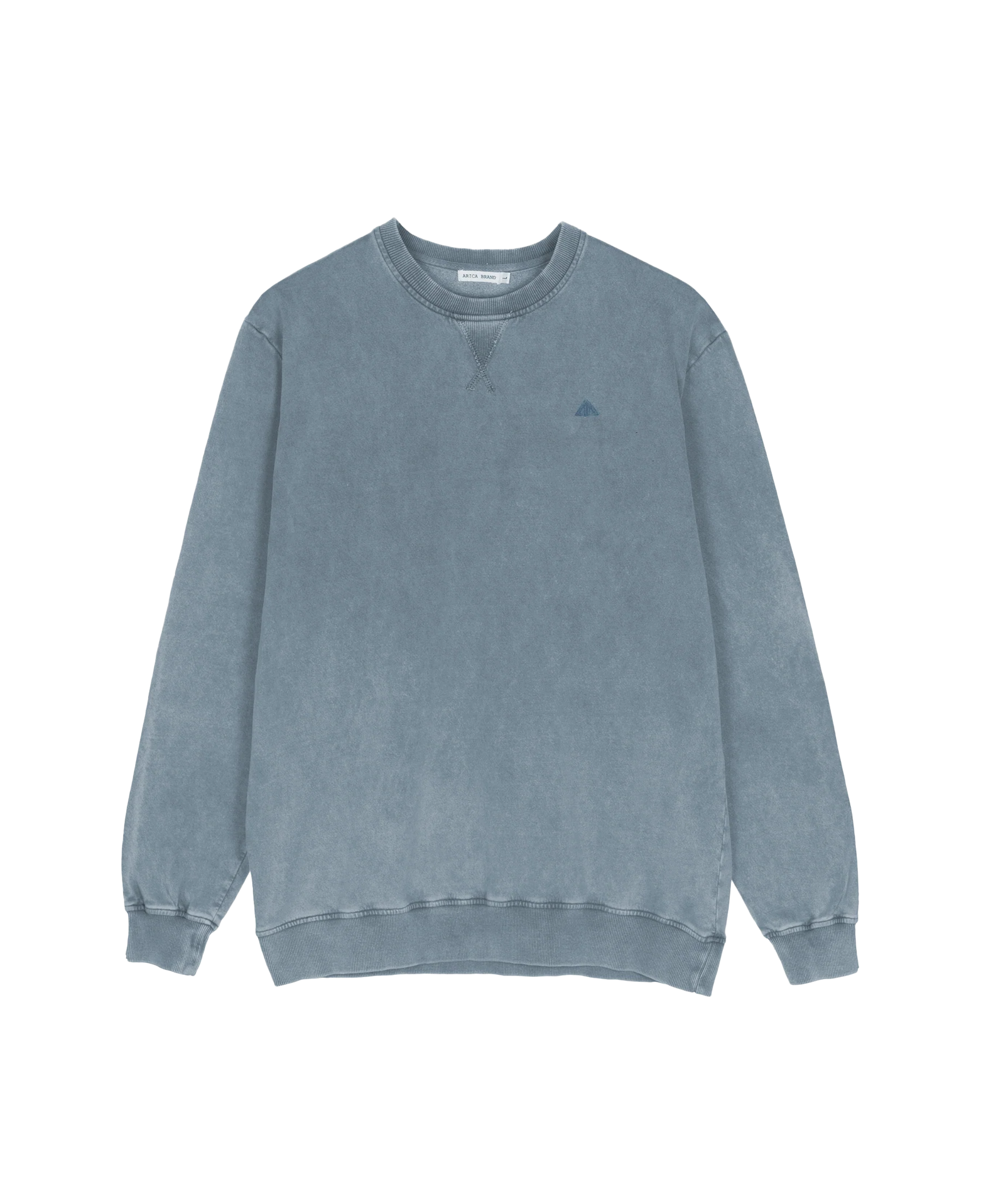 Sudadera 100% algodón color verde grisacéo con efecto desgastado, esta vez con mas gramaje. Bordado del logo en el delantero derecho a tono del tejido. Interior perchado.