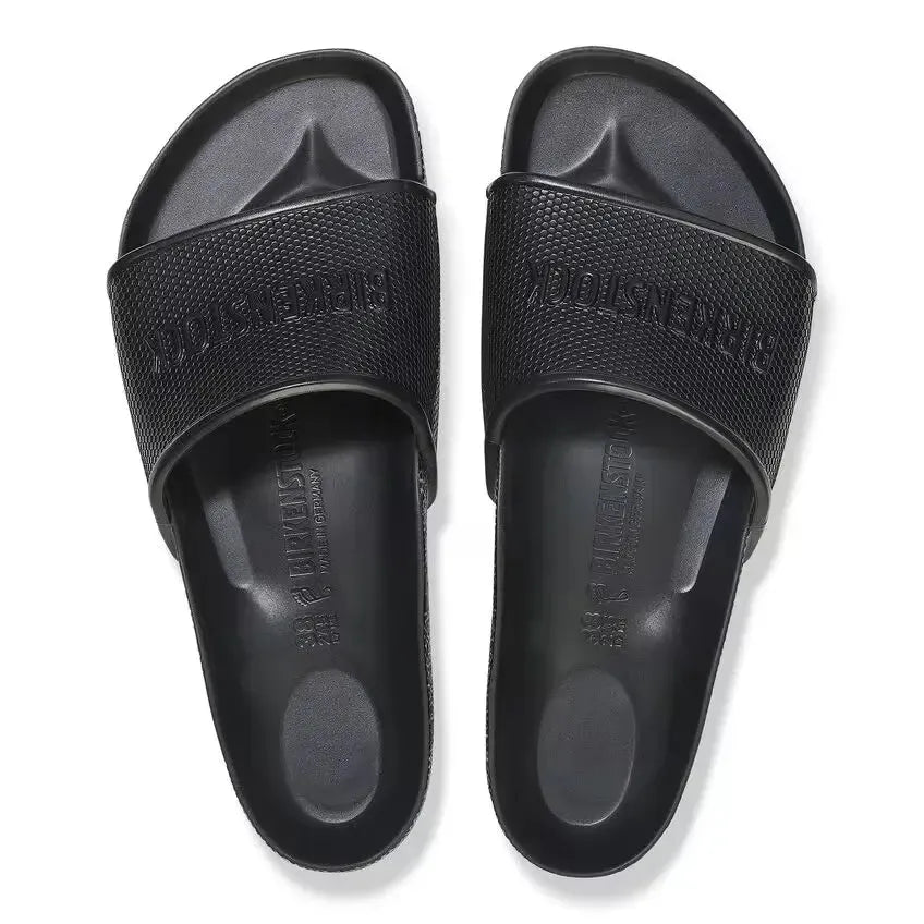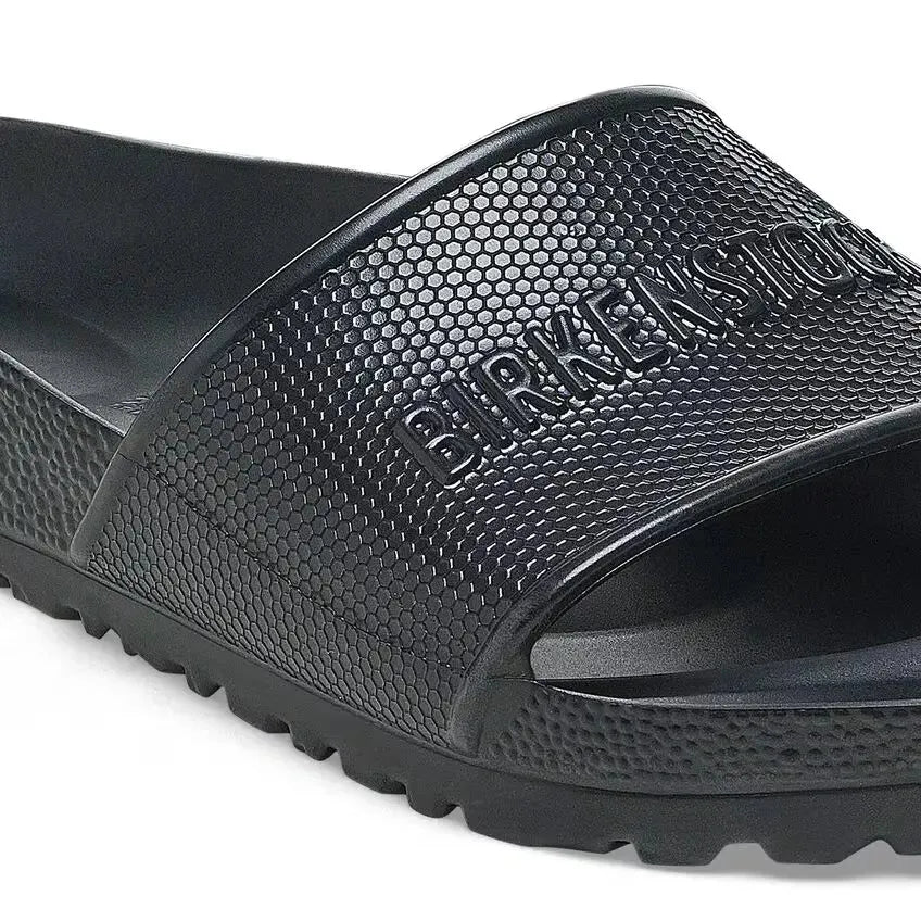 El modelo BIRKENSTOCK Barbados destaca como chancla deportiva con un diseño de hexágonos y la inscripción del logotipo. Perfecta para todo aquel que busca un calzado práctico y cómodo ante todo. Inspirado en las sandalias de corcho, esta sandalia está hecha con material EVA, muy ligero y flexible. El material plástico de alta calidad no tiene olor ni sustancias contaminantes, amortigua los golpes y es impermeable y respetuoso con la piel. Esta sandalia es, por lo tanto, perfecta para llevarla en la playa, en el jardín o en un balneario o spa.