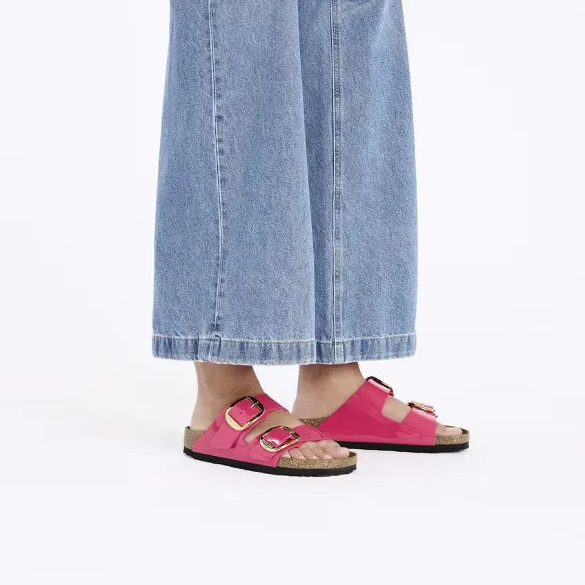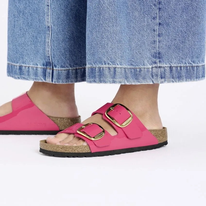 Birkenstock Arizona Big Buckle Birko-Flor esmaltado Patent Fuchsia Fusion