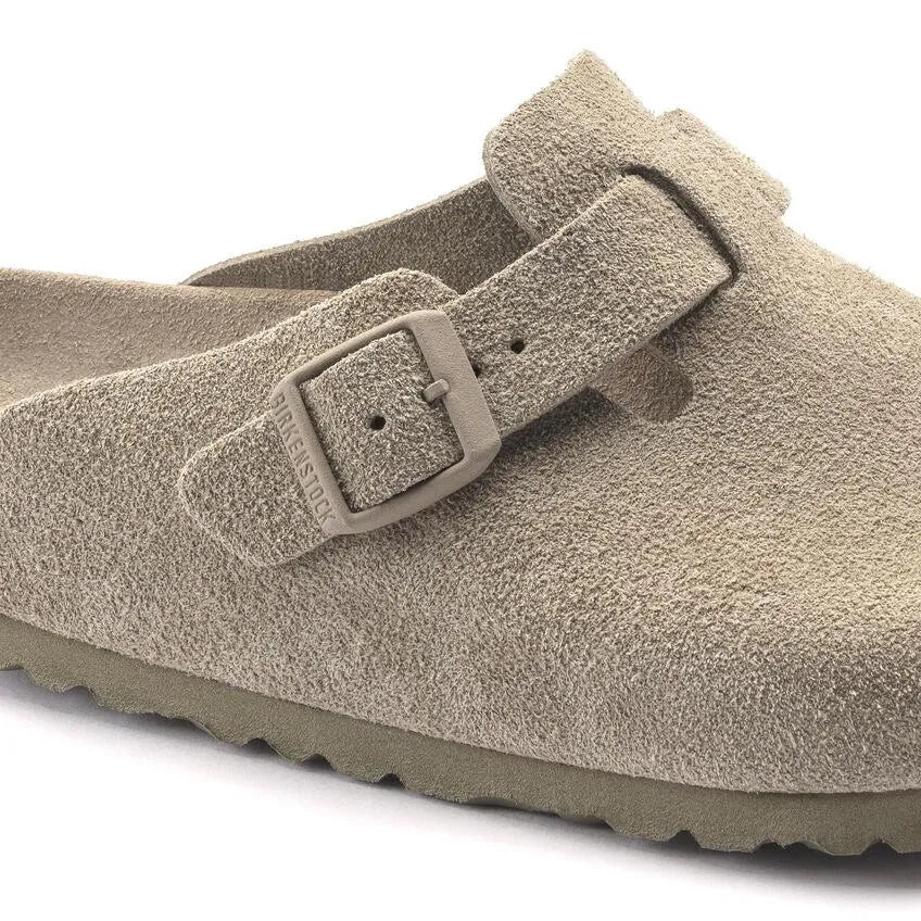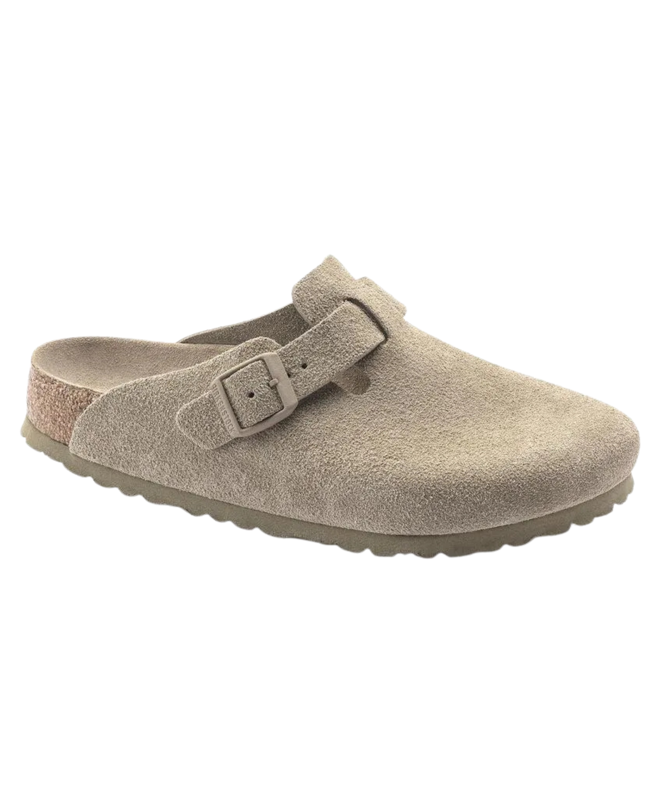Zuecos Boston Suede Leather Faded Khaki Plantilla Blanda