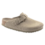 El zueco Boston de BIRKENSTOCK es un auténtico clásico que se puede llevar sin problema durante todo el año. Las hebillas en color a juego con tacto de tela y diseño mate, así como la suela en color a juego, son otros de los elementos destacados. Por medio de la capa adicional de espuma, la plantilla blanda ofrece una dosis de comodidad extra y mima el pie durante todo el día. El material superior está compuesto por suave ante.