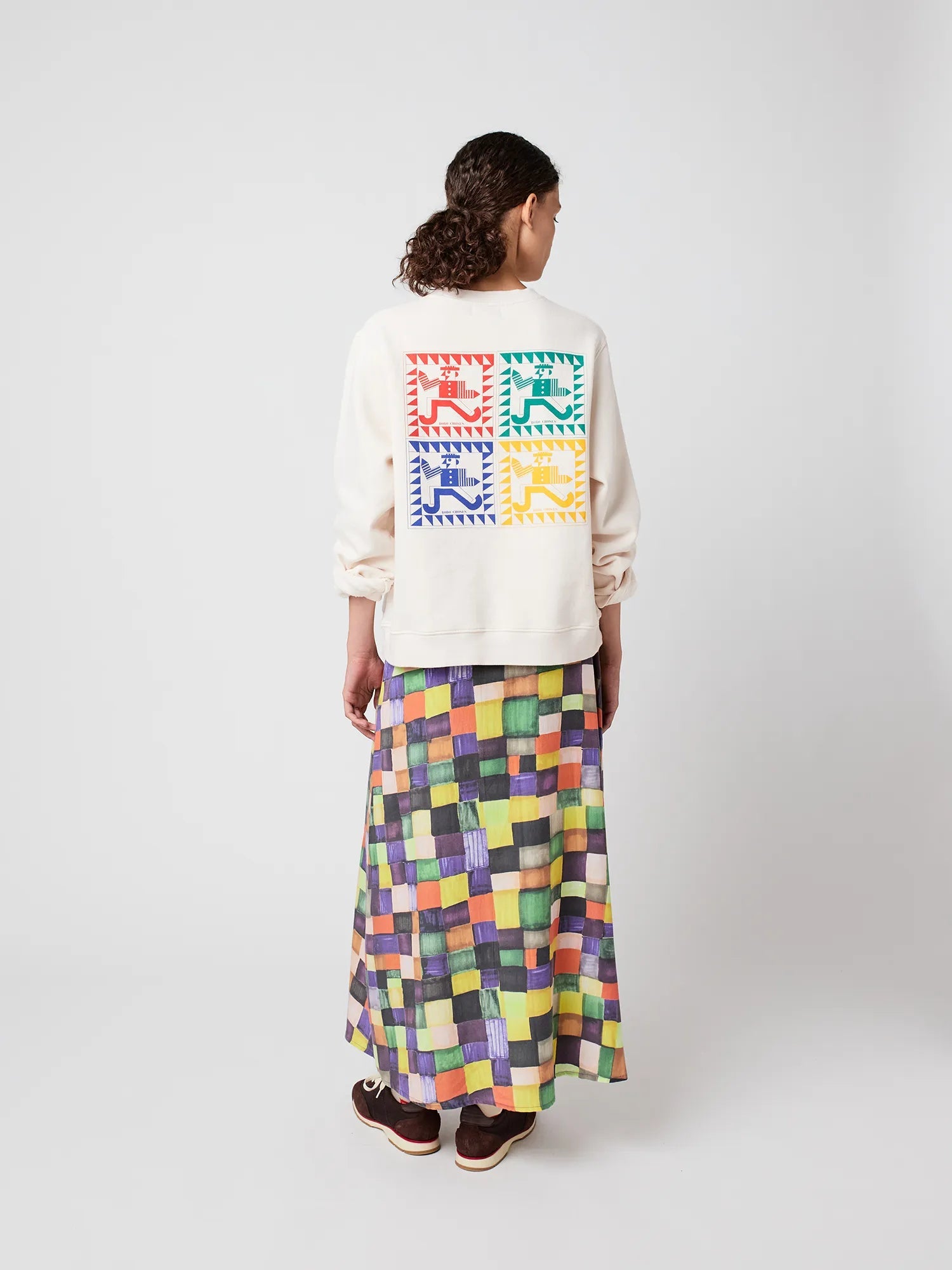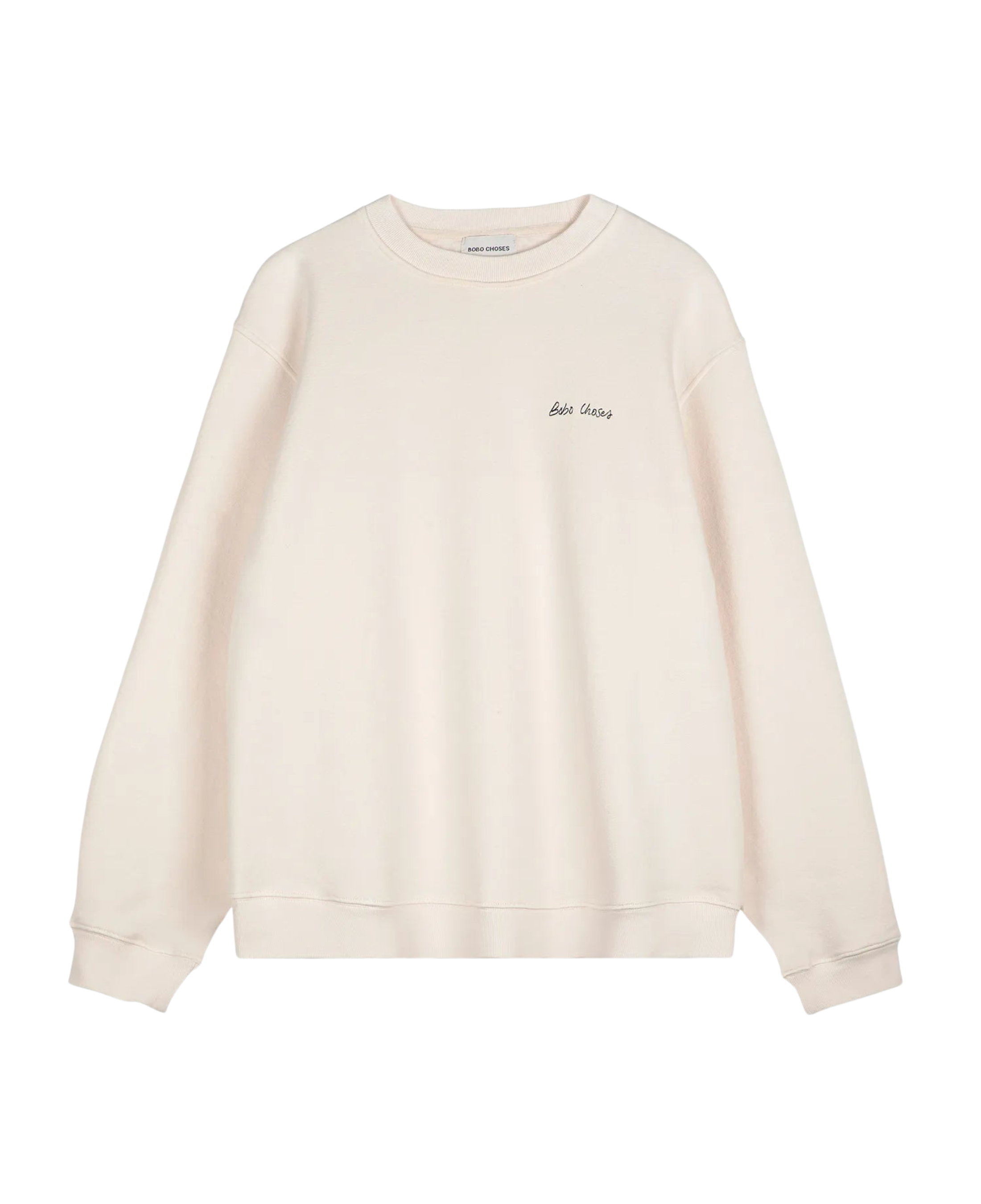Sudadera color blanco roto. Diseñada con un corte ligeramente holgado y tela elástica. La talla es justa, elige tu talla habitual. Fabricado en Portugal.