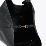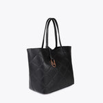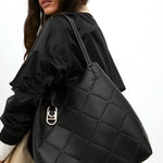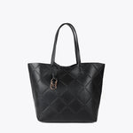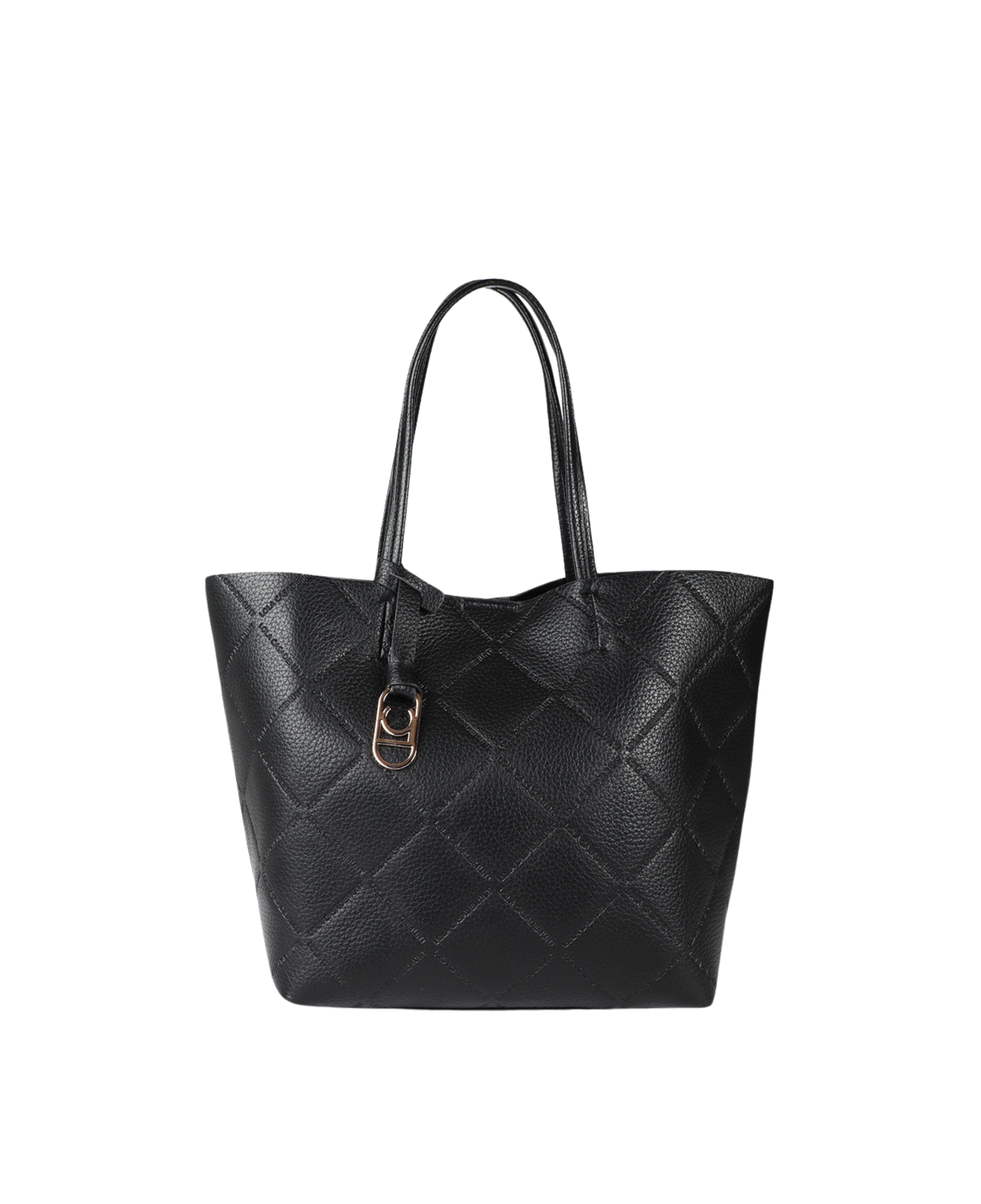 Shopper de efecto piel con diseño de monograma de rombos. Incluye un elegante colgante con logo ovalado. Asas de mano largas, ideal para diario.