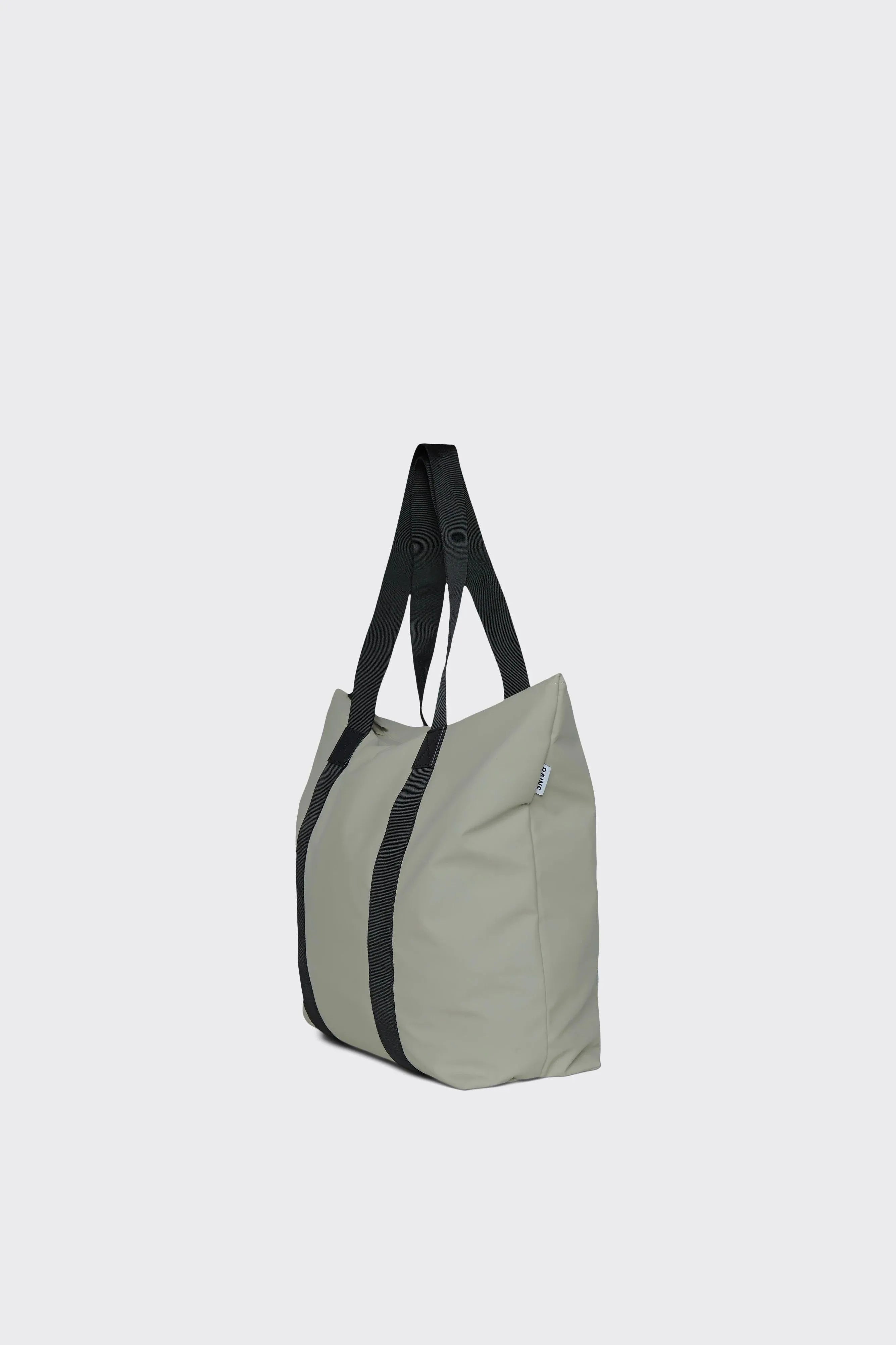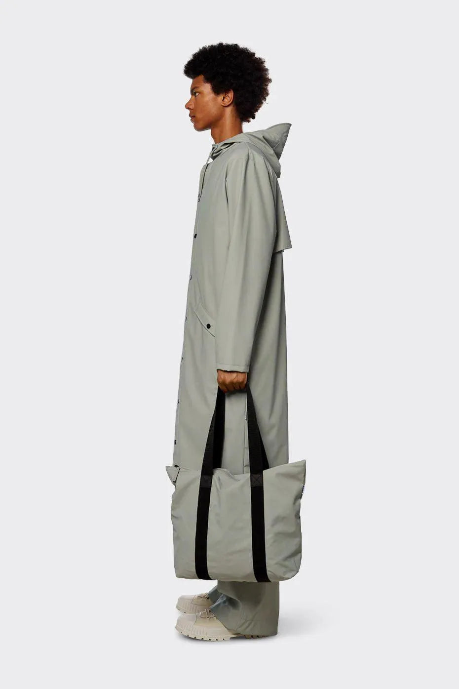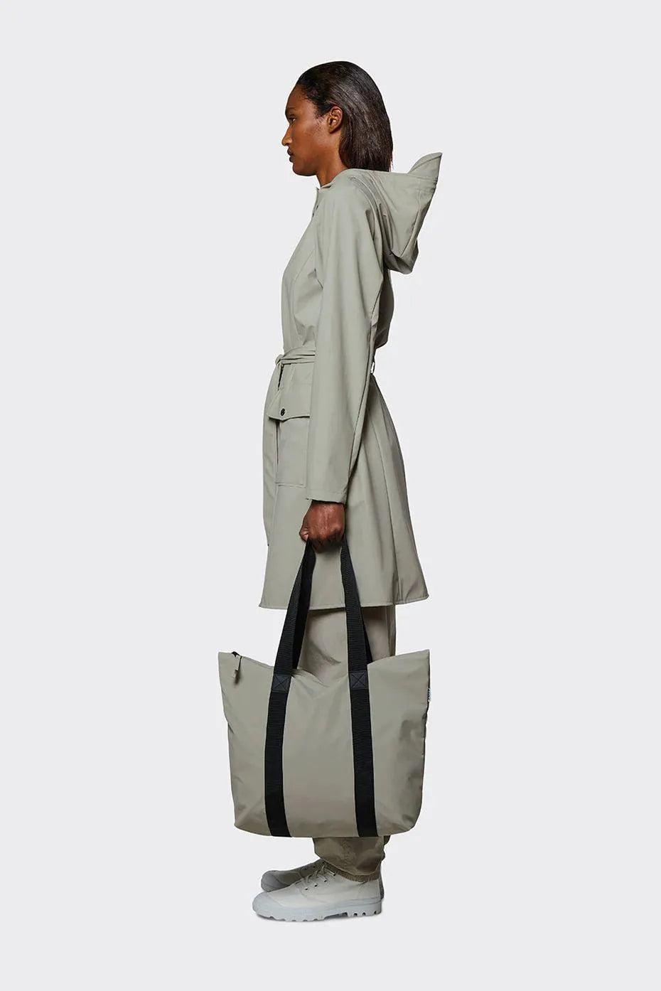 Tote Bag Rush está confeccionado con el tejido de PU impermeable característico de Rains, diseñado para brindar resistencia, durabilidad y una sensación de suavidad.