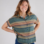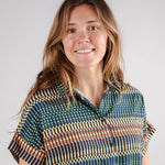 Blusa de manga corta estilo murciélago con corte recto y fit regular. Detalle decorativo en el dobladillo de las mangas. Dispone de un cierre con botones y presenta una tapeta aplicada. Éticamente confeccionada de viscosa sostenible.