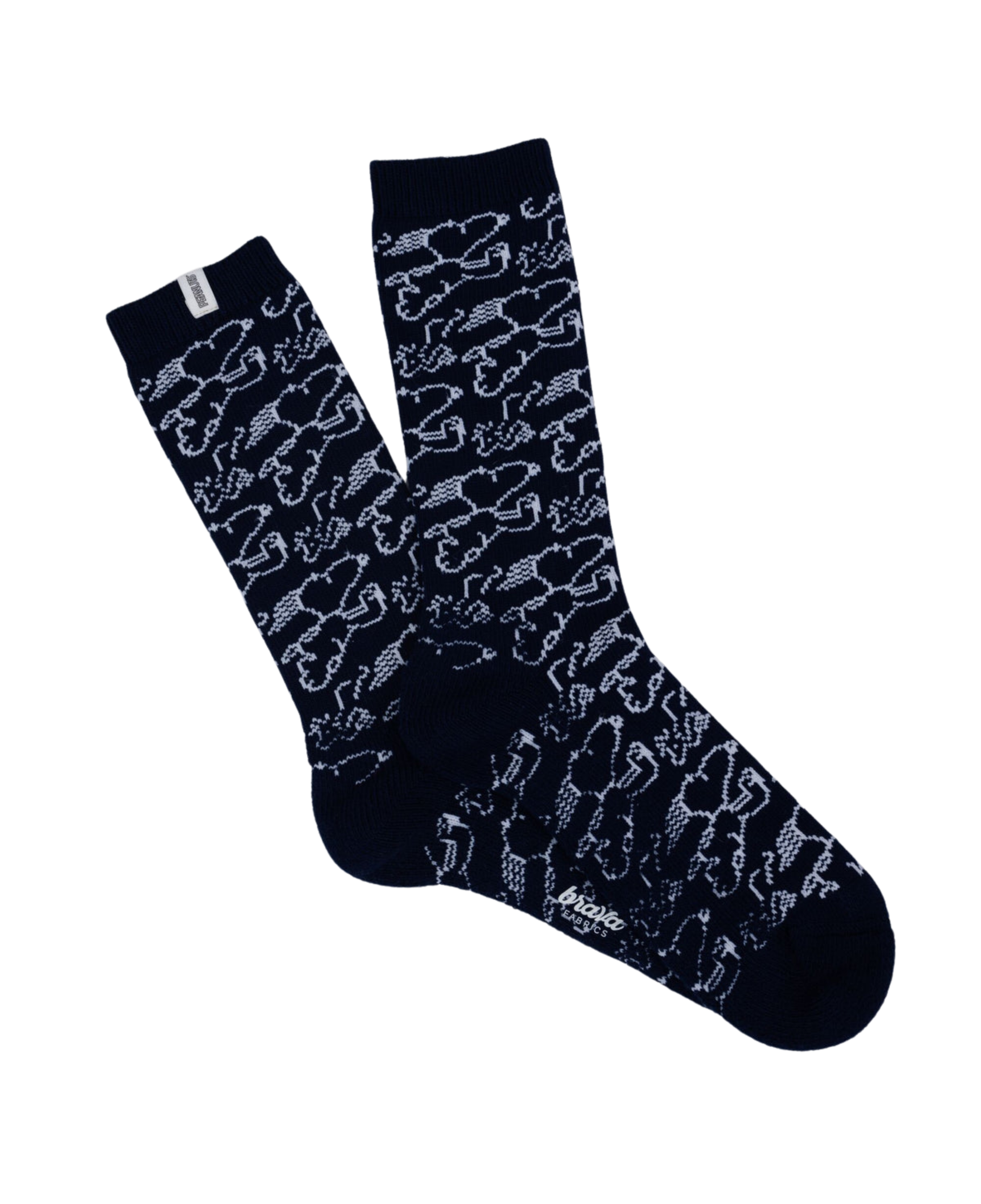 Los Peanuts Everybody’s in a Hurry Socks en color azul marino de Brava Fabrics combinan diversión gráfica, comodidad y materiales responsables. Confeccionados en 100 % algodón orgánico, estos calcetines de media caña ofrecen suavidad al tacto, un ajuste ceñido y un diseño lúdico inspirado en la colección Peanuts. El tono azul marino aporta versatilidad y los convierte en un detalle de estilo que se integra tanto en looks deportivos como urbanos.