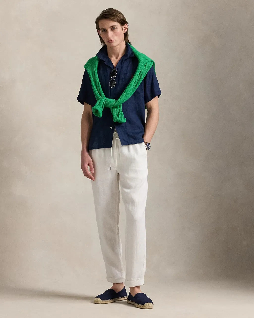Esta camisa de manga corta se ha confeccionado con lino ultraligero y presenta el caballo marca de la casa bordado en el bolsillo.