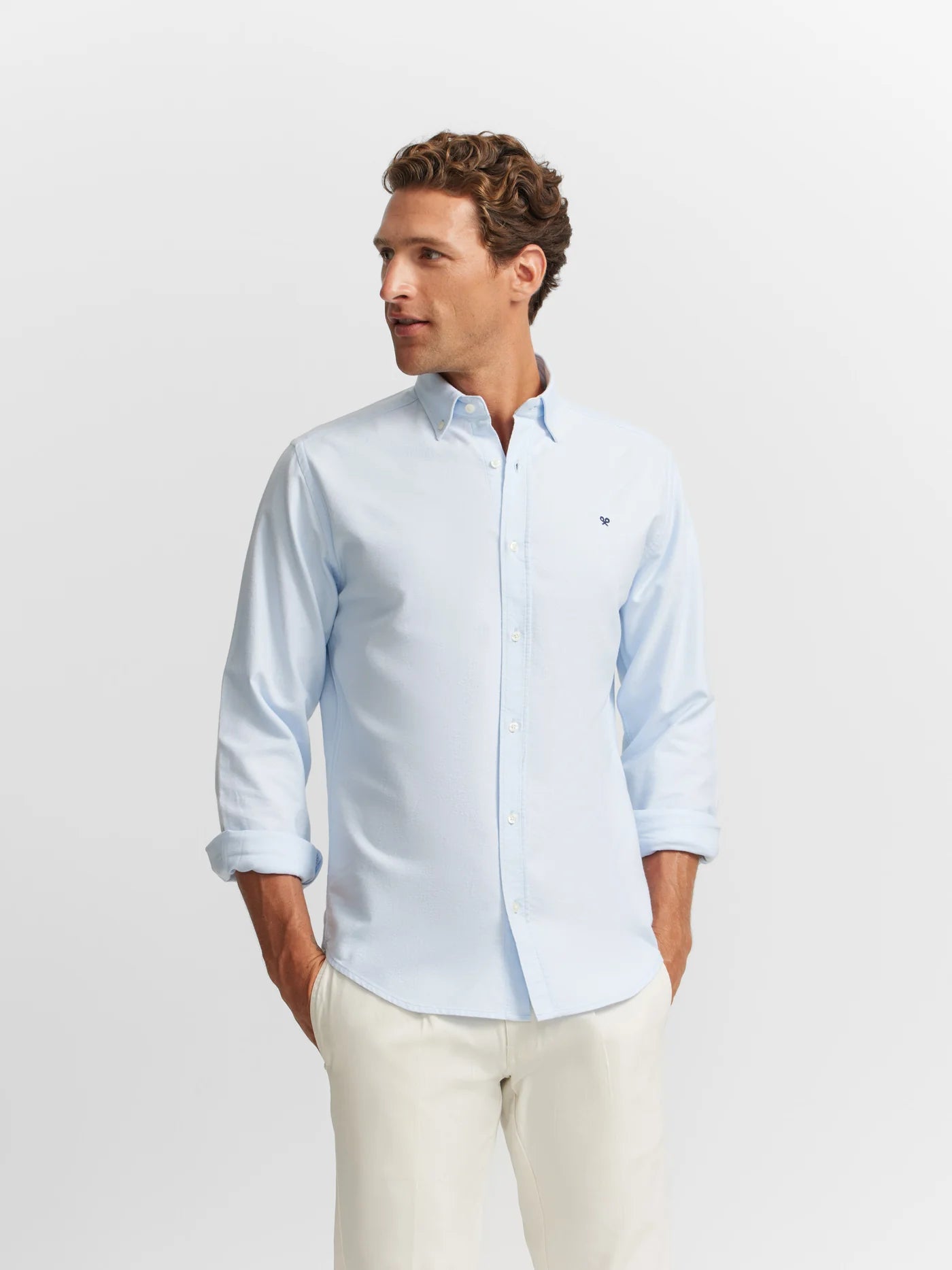 La camisa Sport Oxford de Silbon es una prenda versátil que sitúa el clásico tejido oxford en clave contemporánea. Confeccionada en 100 % algodón BCI, garantiza suavidad al tacto y una producción más responsable. Su corte slim fit realza la silueta de forma sutil, mientras que el cuello tipo button-down y el cierre frontal con botones personalizados aportan detalles refinados. Las mangas largas con puño abotonado complementan su carácter casual-elegante. La tonalidad celeste aporta frescura y versatilidad al conjunto.