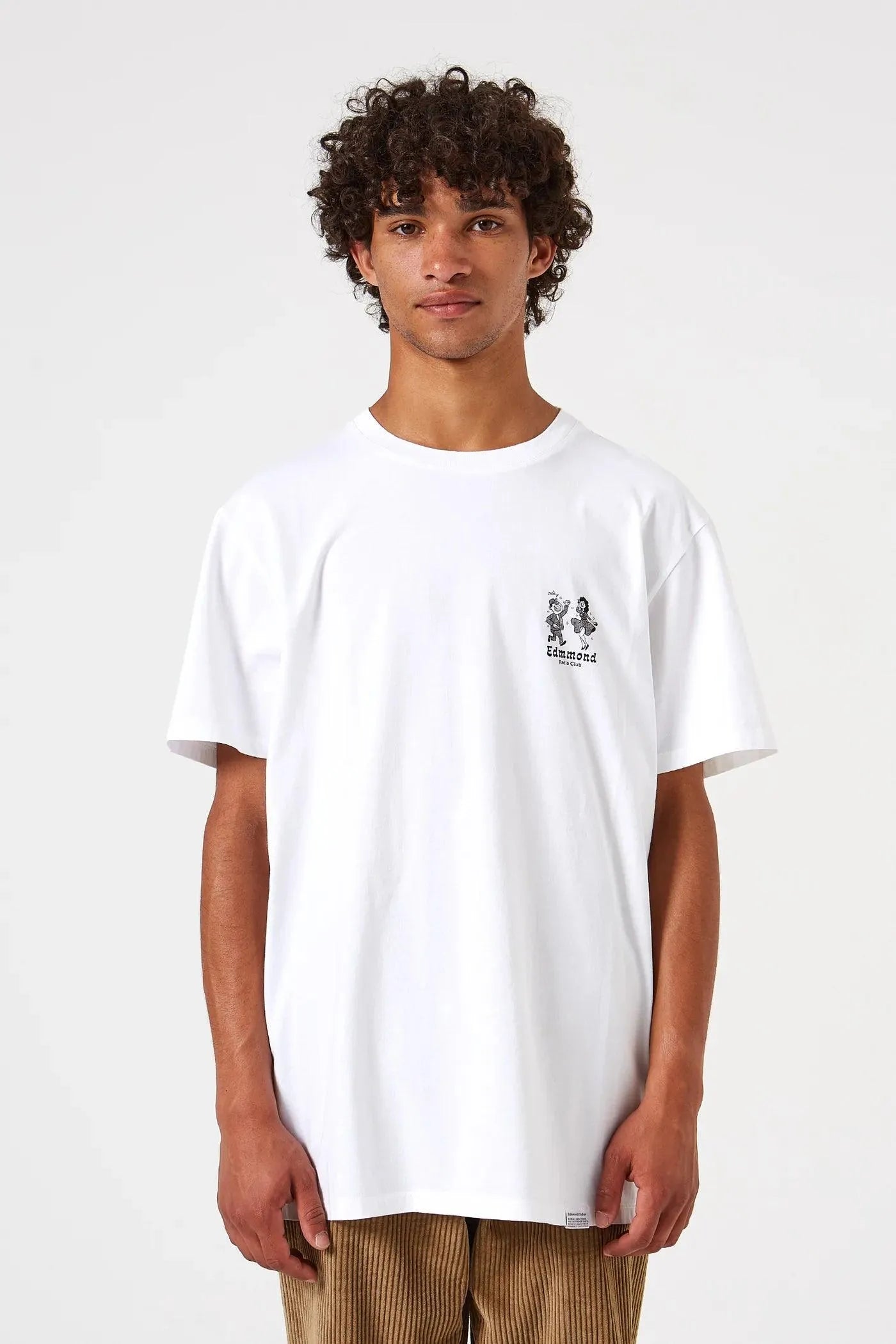 Camiseta de manga corta en color blanco. Fabricada en algodón 100% orgánico. Cuenta con una ilustración en la parte delantera.