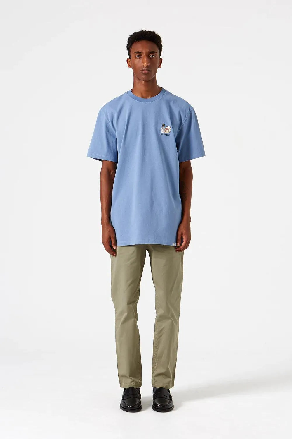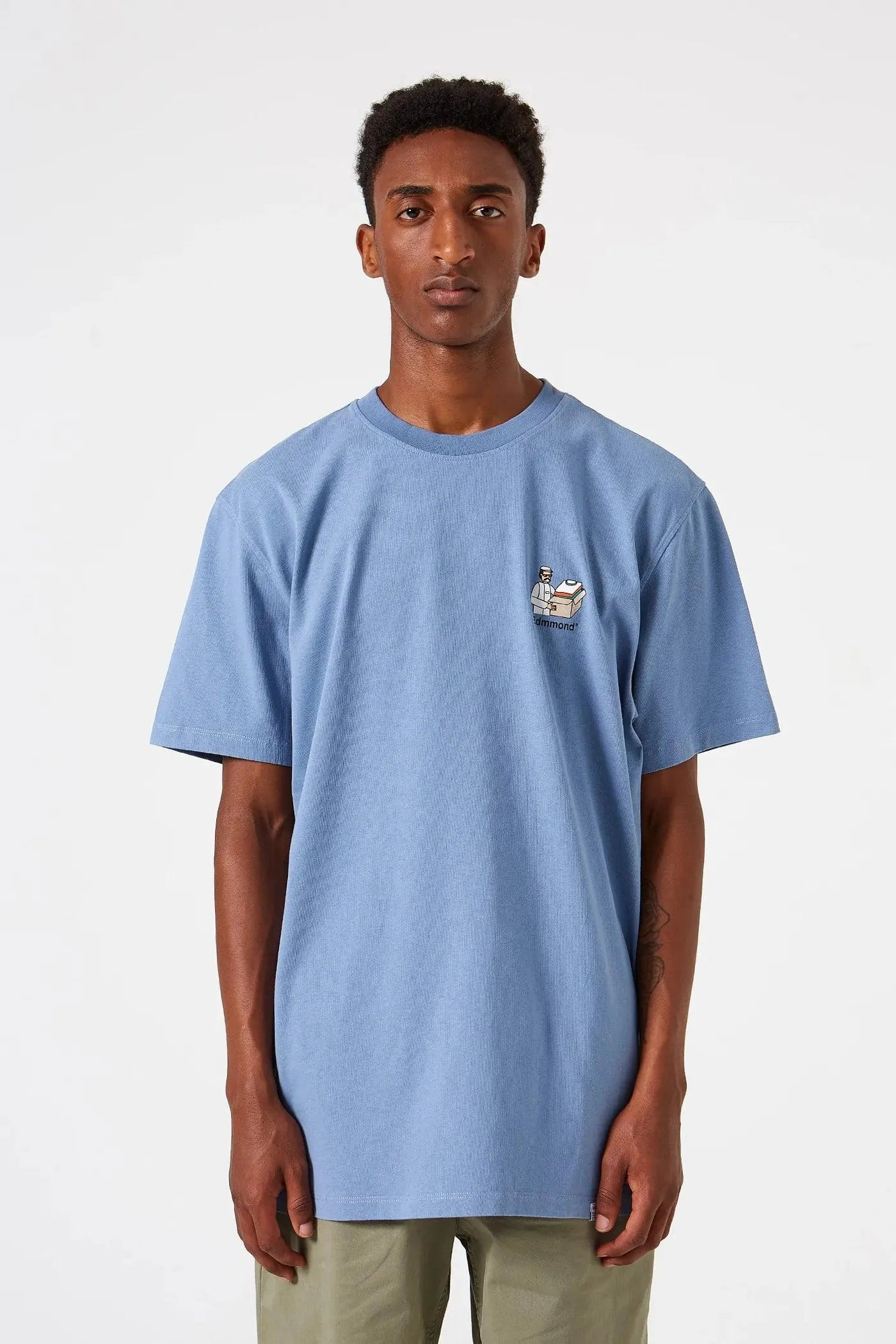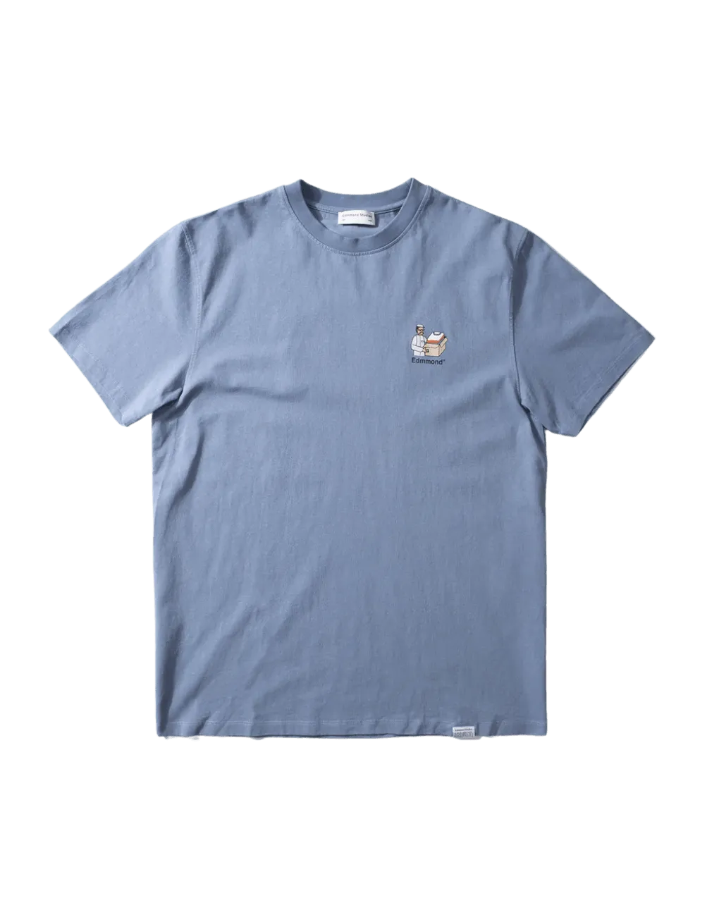 Camiseta de manga corta en color azul acero. Fabricada en algodón 100% orgánico. Cuenta con una ilustración en la espalda.