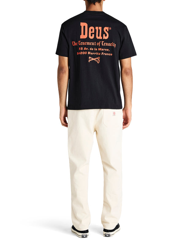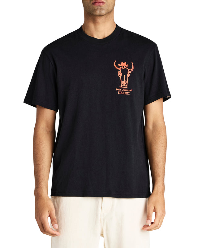 Camiseta de manga corta y corte recto con estampado artístico en el pecho y la espalda, confeccionada en punto de algodón reciclado con un lavado a máquina intenso.