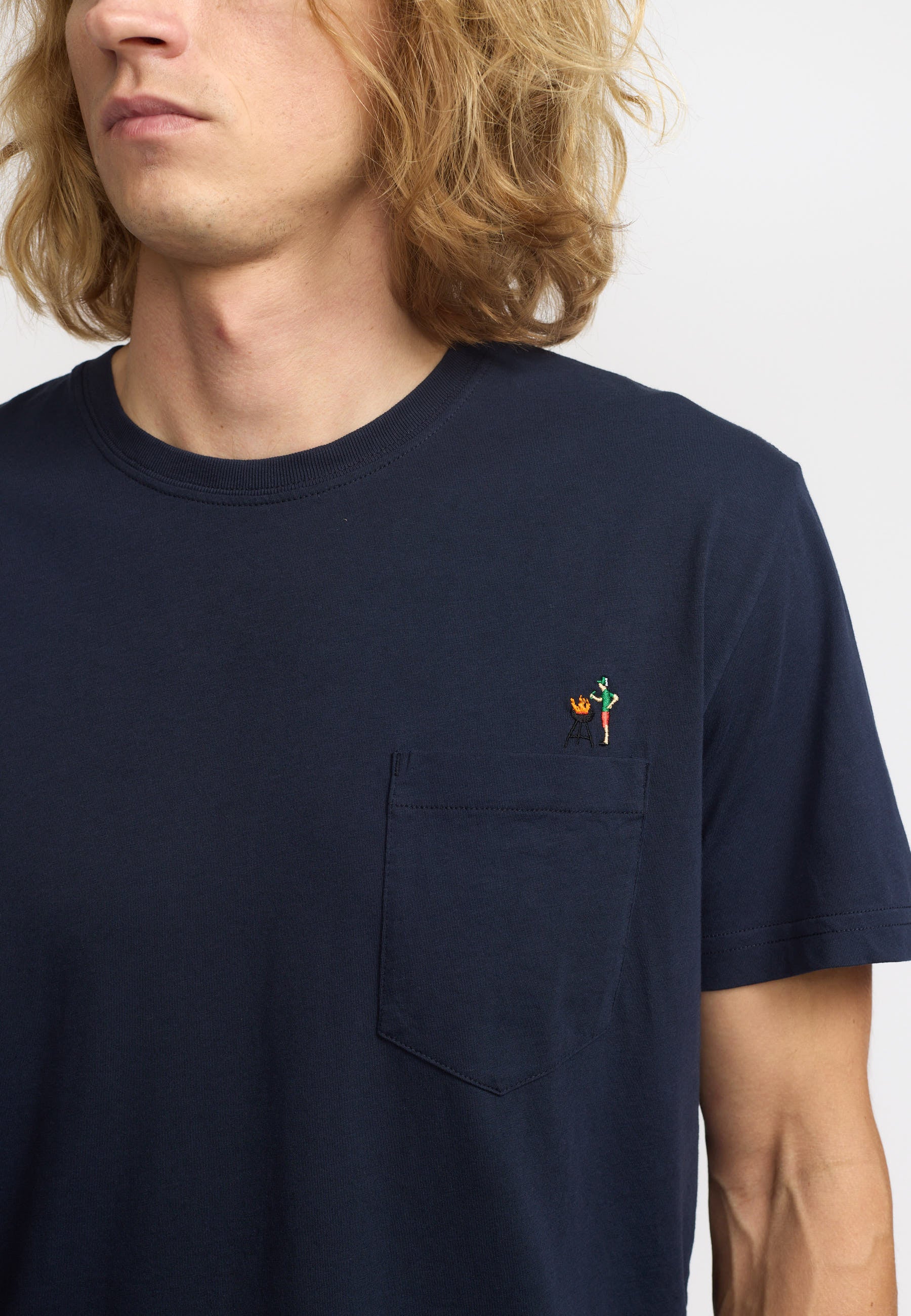 Camiseta de corte regular con bolsillo, cuello redondo y manga corta, confeccionada en jersey de algodón orgánico con un gramaje de 160 g/m². Un pequeño y divertido bordado de colores en el bolsillo del pecho le da un toque sutil de personalidad a la camiseta. El acabado de la camiseta le aporta suavidad y garantiza la estabilidad y durabilidad del modelo.