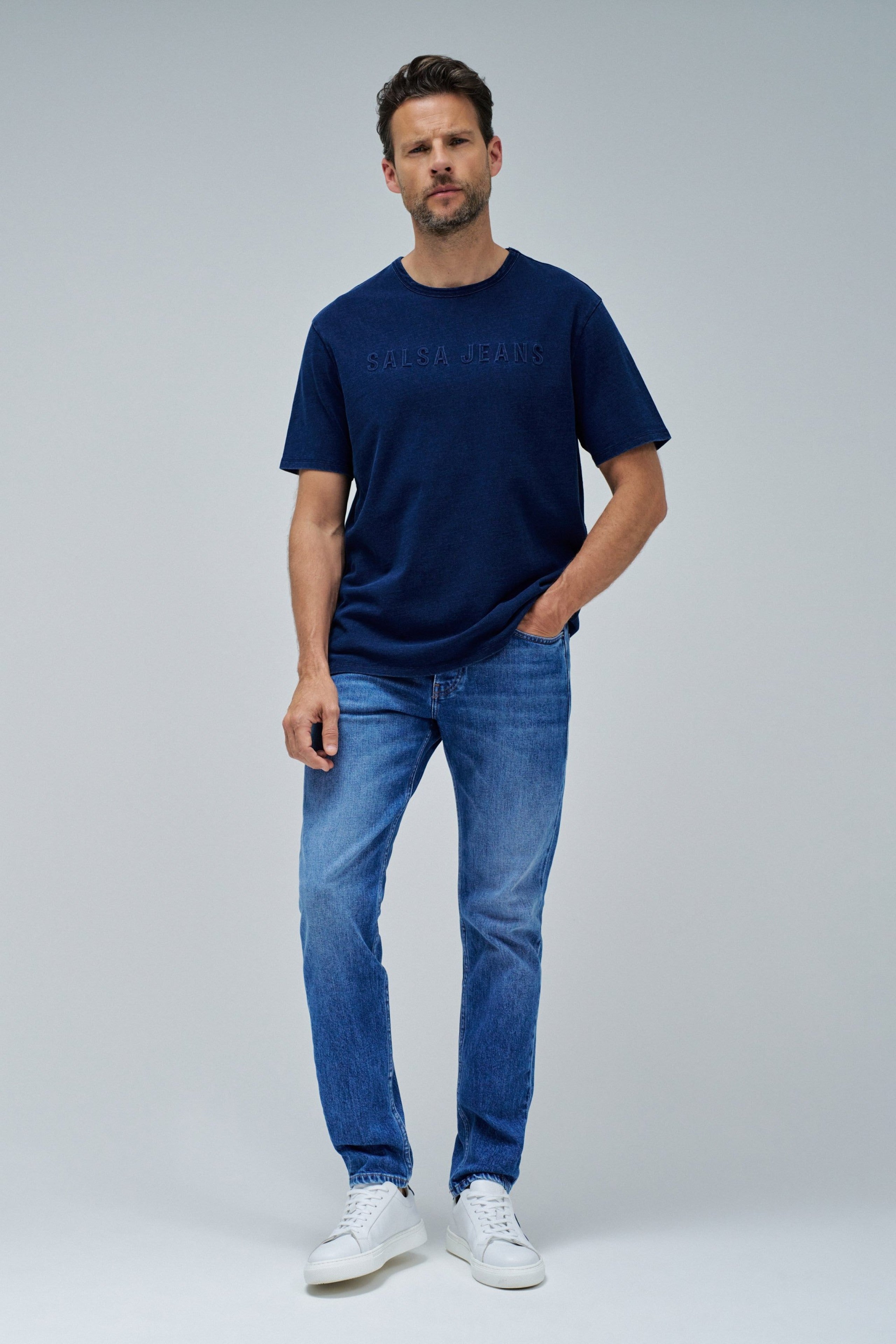 Siente la comodidad de esta camiseta con tejido 100% algodón y corte regular, perfecta para un look casual y moderno. Con cuello redondo y mangas cortas para un estilo relajado. El detalle de branding añade un toque de sofisticación a esta prenda esencial en tu armario.