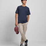 • Si prefieres un estilo más smart-casual: úsala con un chino en tono gris claro o beige y unas zapatillas minimalistas o mocasines casuales.