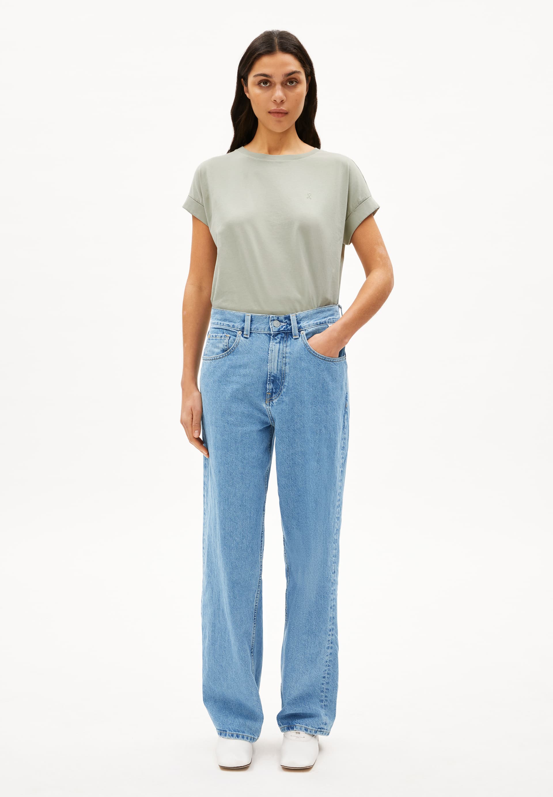 Bestseller absoluto: la camiseta IDAARA. Con su corte holgado y relajado, su tejido de punto de peso medio de suave algodón orgánico y su pequeño logotipo bordado, es muy cómoda de llevar. Perfecta para el día a día y versátil, ¡un auténtico imprescindible!