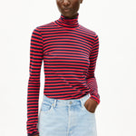 Camiseta ARMEDANGELS Manga Larga Grazilianaa Stripes Tinted Navy-Candy Apple