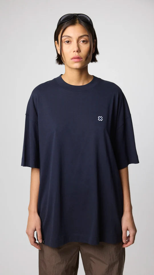 Camiseta con nuestra clásica X bordada en la parte delantera del pecho. Confeccionada con algodón 100% orgánico y corte boxy.