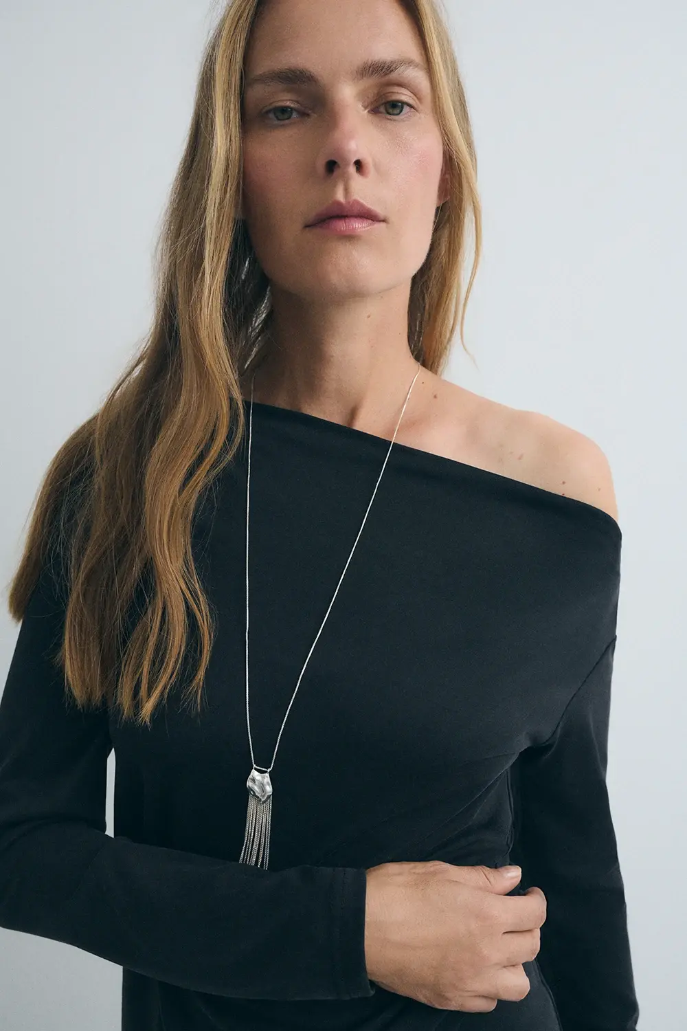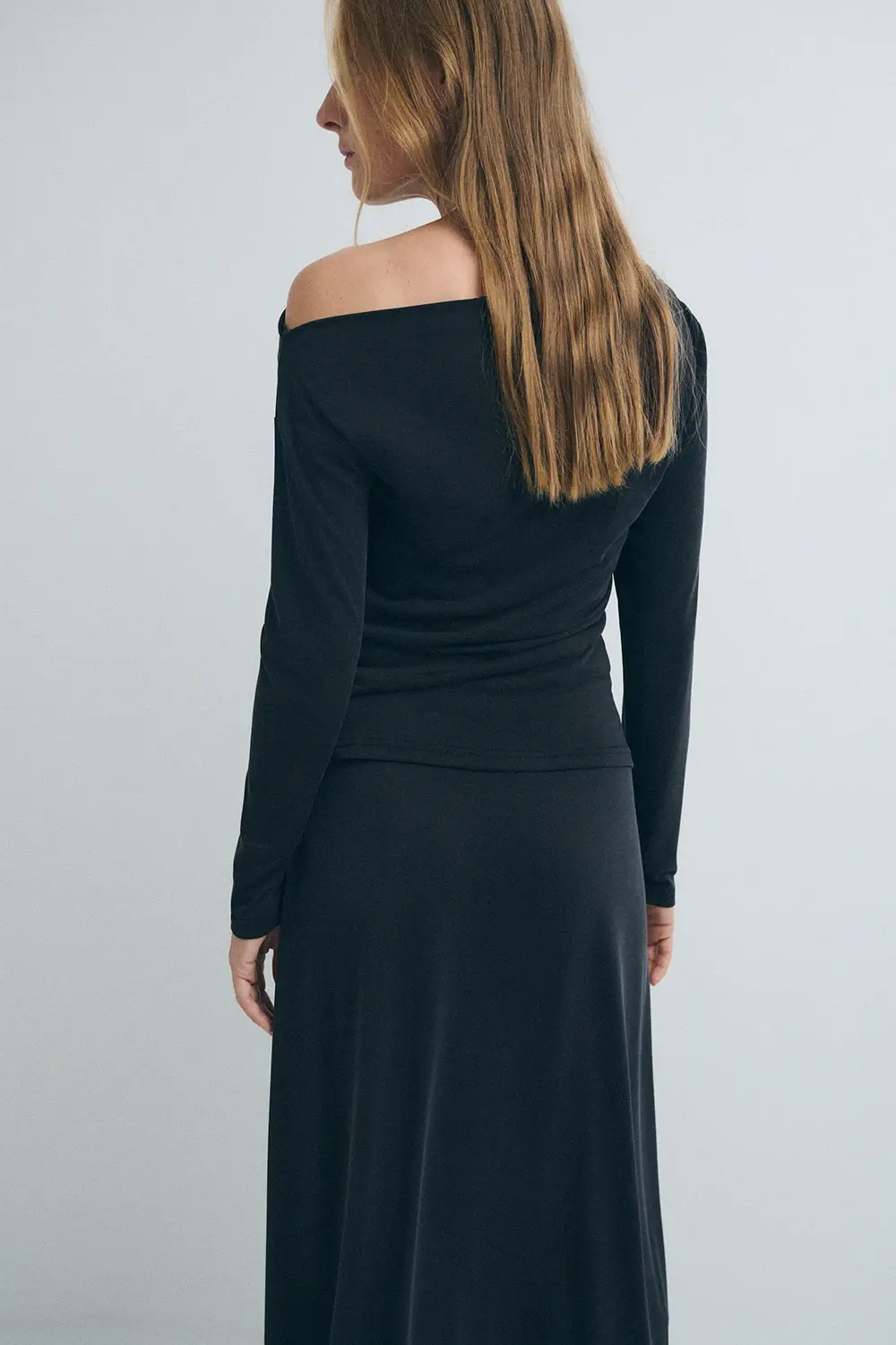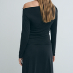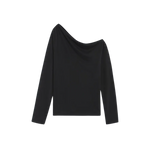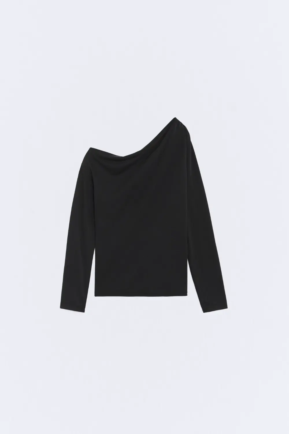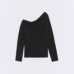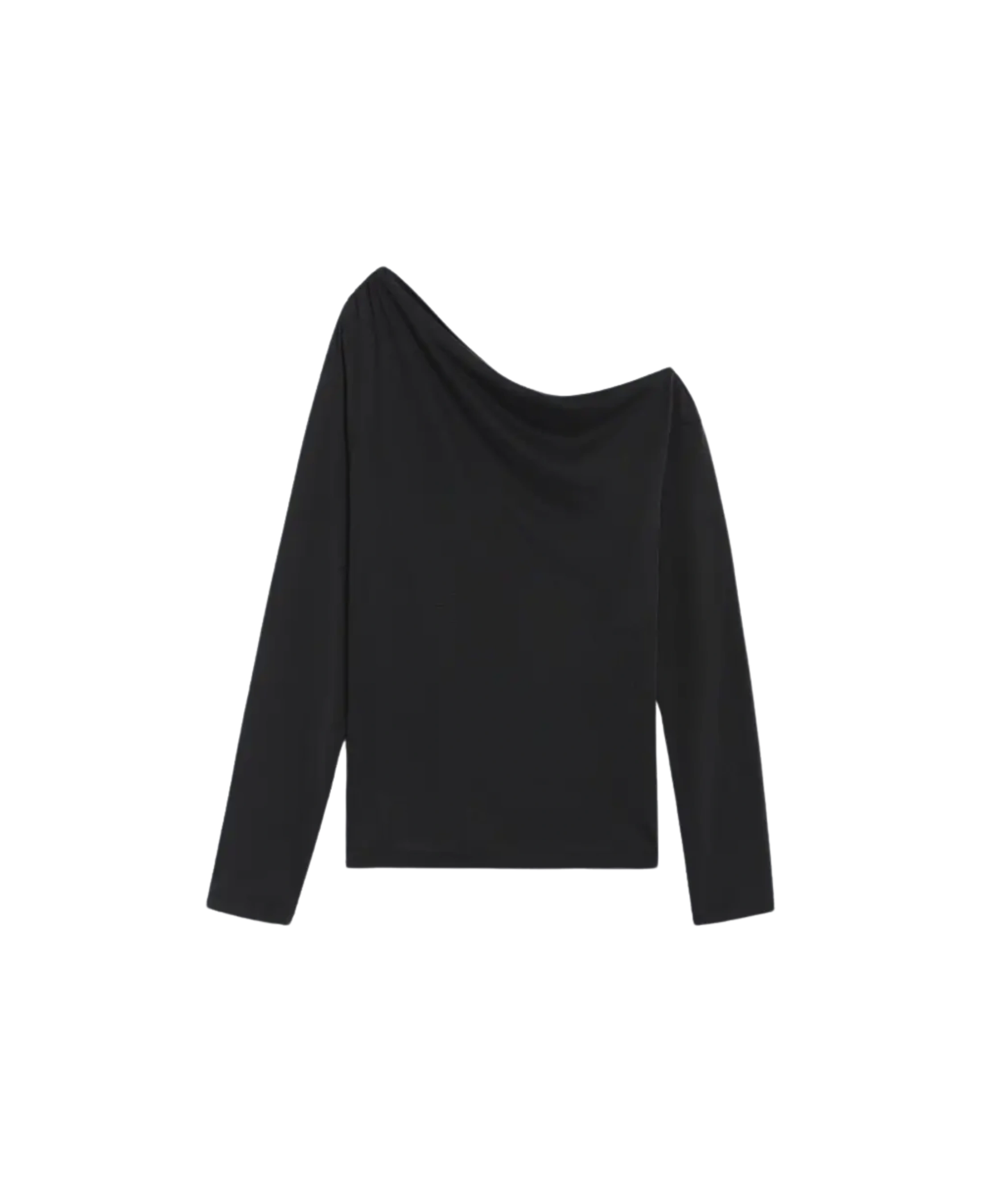 La versatilidad del negro convierte esta camiseta en un básico clave del armario: puedes combinarla con faldas, pantalones anchos, vaqueros o piezas estructuradas, adaptándola a looks urbanos, minimalistas o más cuidados. El escote asimétrico añade un punto diferencial, ideal para quienes buscan una prenda sencilla pero con un carácter distintivo — perfecta para transicionar del día a la noche sólo cambiando los complementos o el calzado.